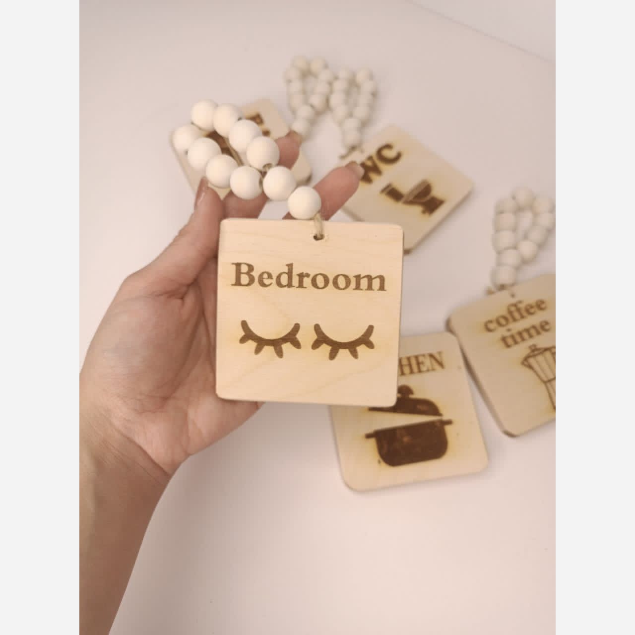 انواع نشانگر های چوبی برای سرویس بهداشتی و آشپزخانه و کافه و اتاق خواب قابل شست و شو دارای آویز مهره ای برای سفارش نوع نشانگر را از ما موجودی بگیرید ارسال به سراسر کشور