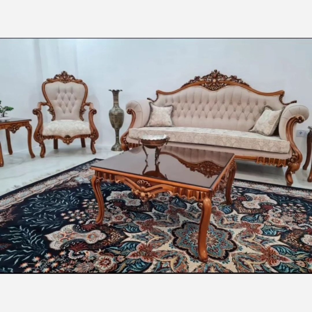 مبل نه تفر شامل 4 عدد مبل تک. نفره 1عدد کاناپه سه نفره 2عدد صندلی میزبان جلو مبلی و دوعدد عسلی داری رنگبندی رنگ کلاف و پارچه امکان کم اضافه کردن نفرات سرویس جهیزیه کامل موجود میباشد