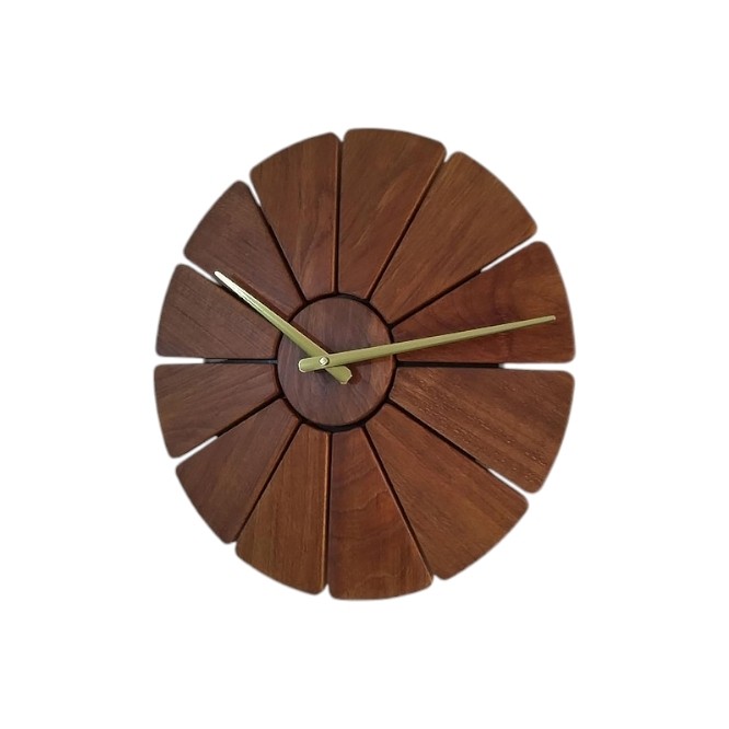 ساعت چوبی تایم. ساخته شده از چوب راش سوپر گرجستان که با پوشش رنگ گردویی پولی اورتان که ضد خش هم هست جذابیت خاص و لاکچری رو به دیوار منزلتون میده. با موتو درجه یک و عقربه های. فولادی.