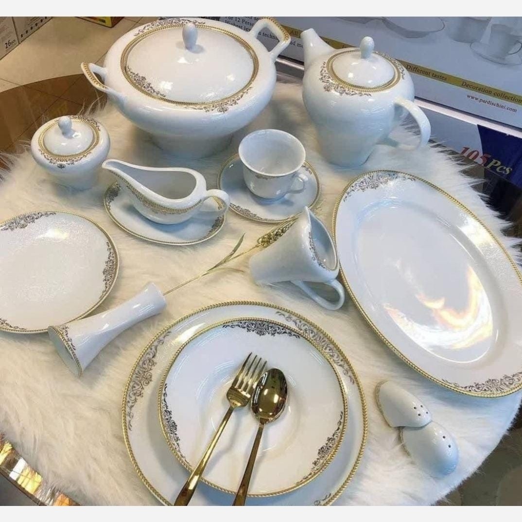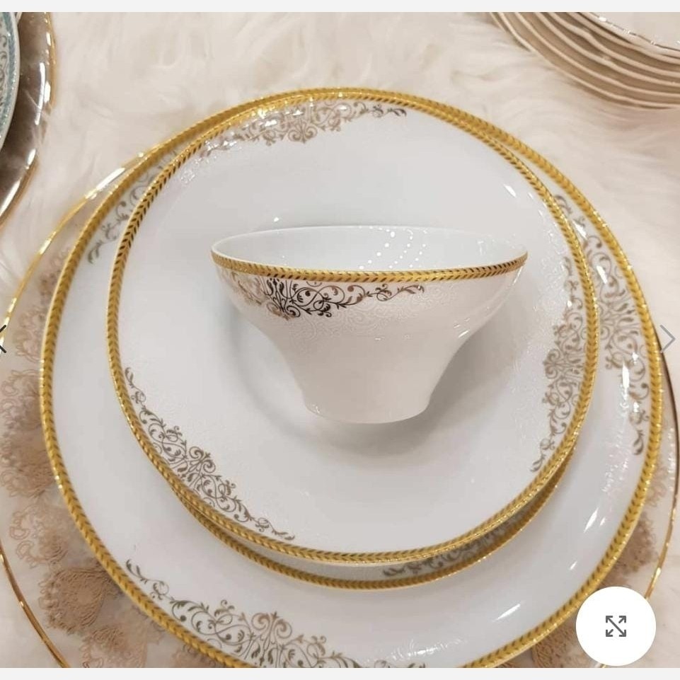 سرویس چینی پردیس قالب رومنس طرح زیبای مرسیا طلایی جنس درجه یک با قابلیت فر و ماشین 104 پارچه 12 نفره قیمت واقعی محصول 8600 هست فروش ویژه ما 8100 😍😍😍😍