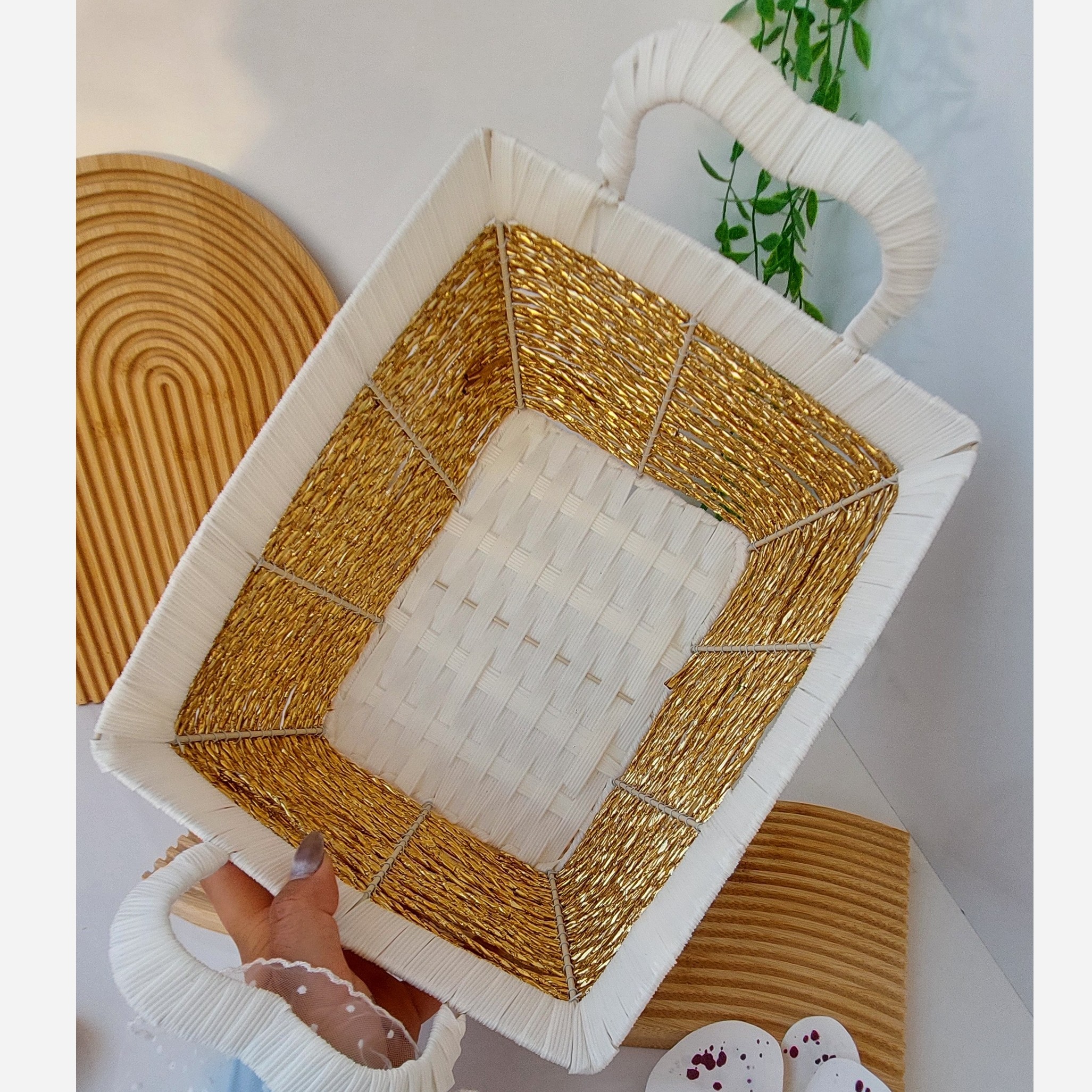 سبد دو دسته سایز بزرگ بافت حصیری جنس بافت پلاستیکی قابل شستشو مناسب برای انواع میوه و سبزیجات ونان و ... با کیفیت فوق العاده