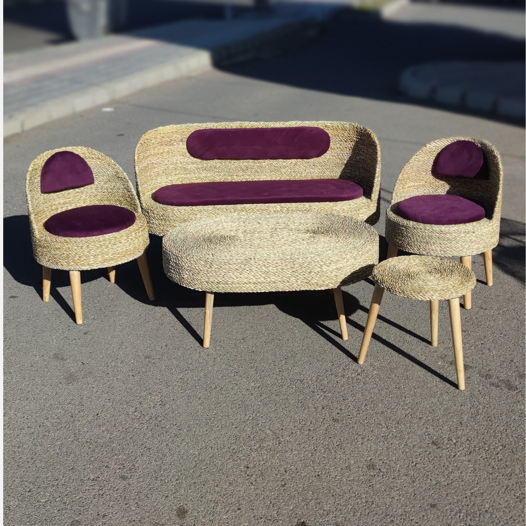 ست 5نفره با کاناپه حصیری مبلمونسرا مدل 215444