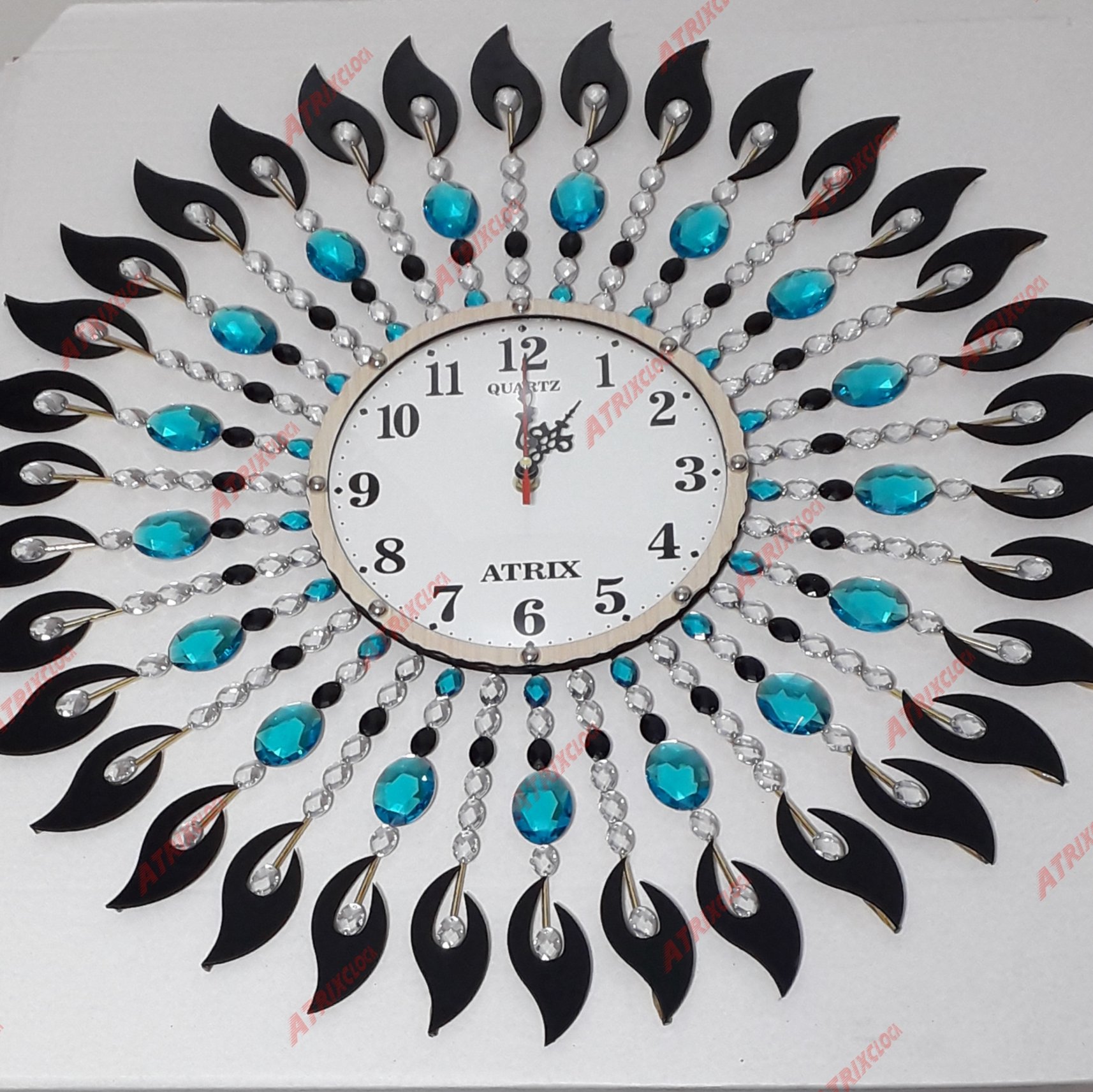 ساعت دیواری مدل خورشیدی فیروزه دارای فریم فلزی روکش شده و با کیفیت بدلیل استفاده از نگینهای فیروزه در طراحی آن همانطور که در طب سنتی تایید شده که فیروزه برای سردرد و آرامش روح و روان همینطور سفیدی دور چشم ها مفید است پس شما علاوه بر خرید یک ساعت دیواری با کیفیت با موتور بدون صدا و آرامگرد سلامت روحی را به خانواده ی خود هدیه میدهید. ثانیه های آرامش را در کنار خانواده با این محصول تجربه کنید و لذت ببرید