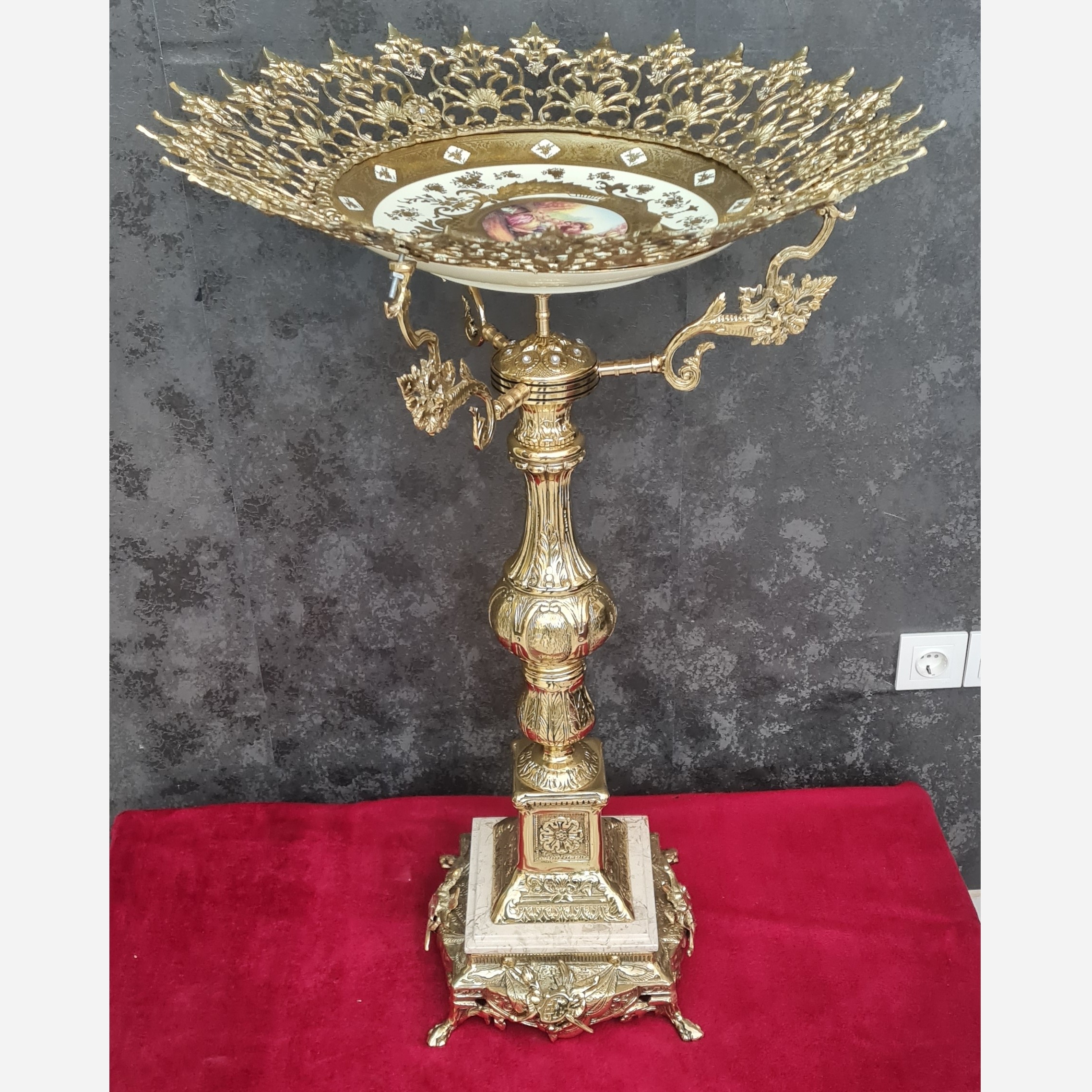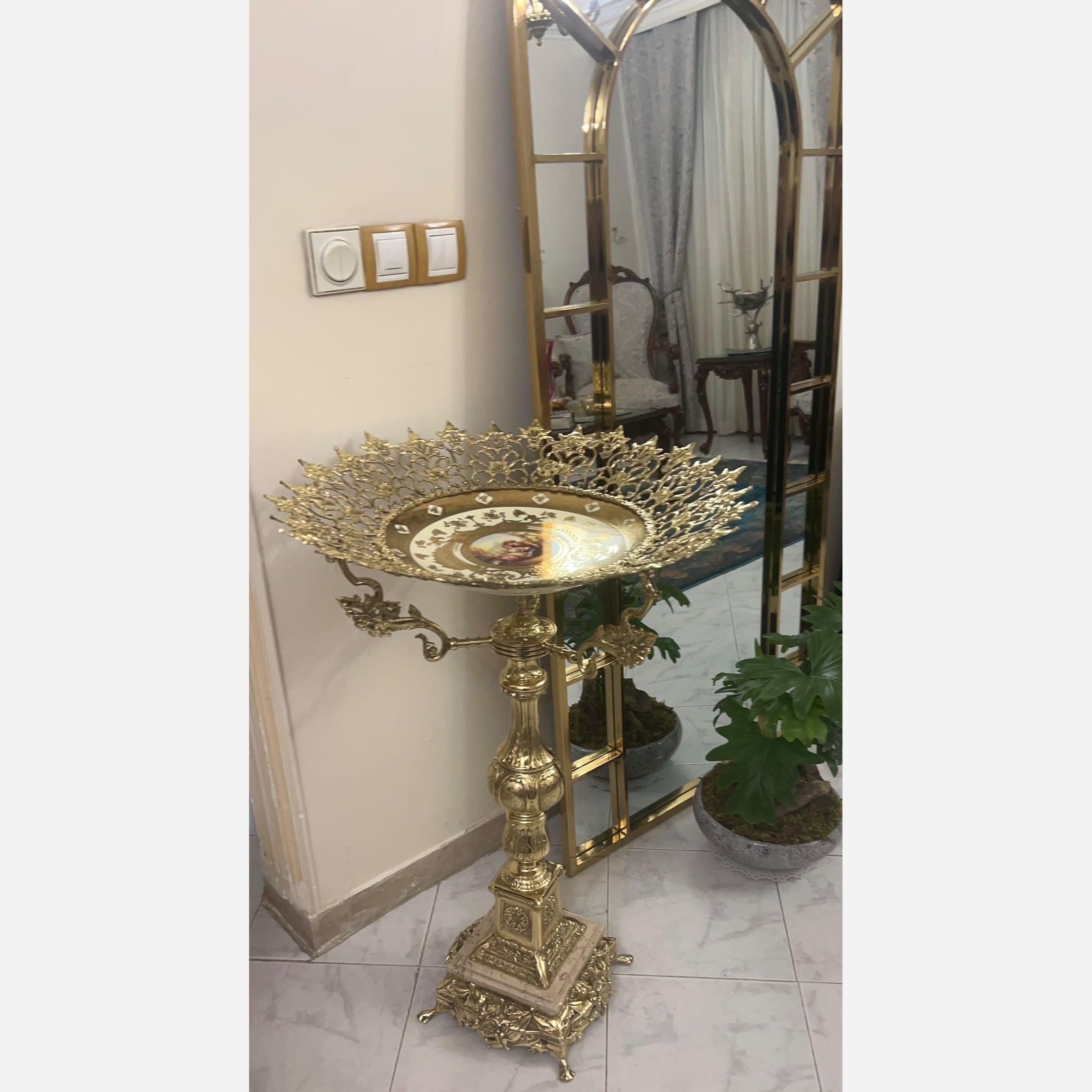 میوه خوری پایه دار کنار سالنی تشریفاتی برنز جا میوه برنزی پایه سنگی هرمی آجیل خوری کنارسالنی برنجی چینی وارداتی اعلا مبلمونسرا مدل 265148