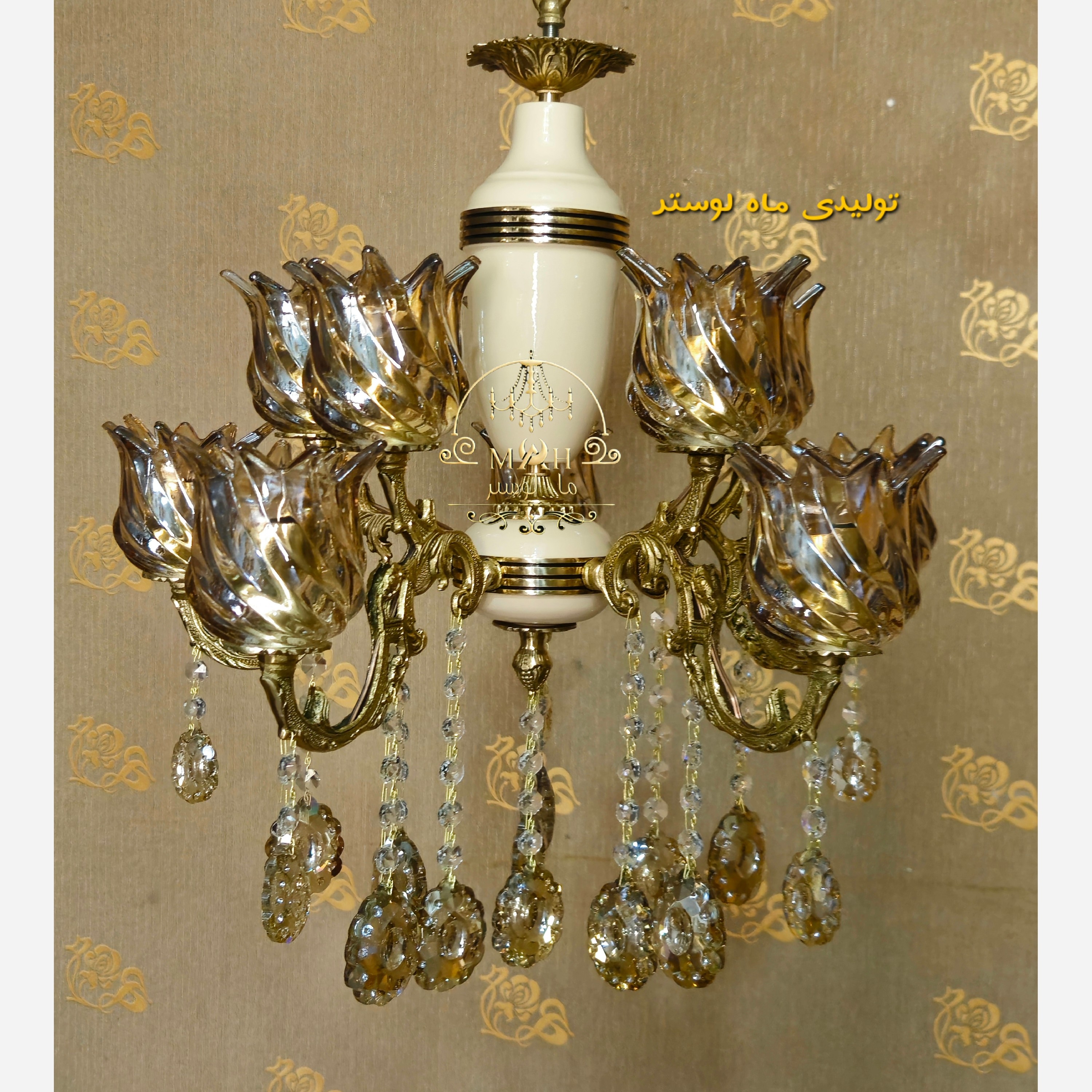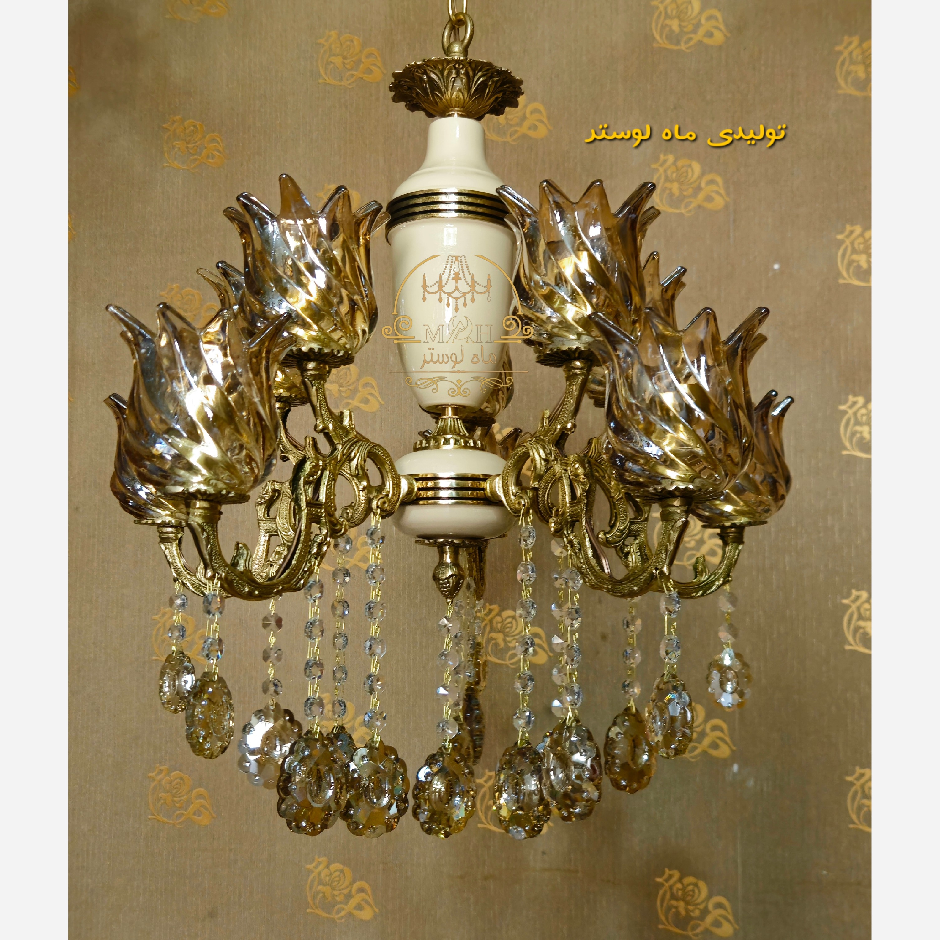 لوستر ترکیبی برنج و فلز استاتیک با رنگ کوره ای با ماندگاری بسیار زیاد با ضمانت کتبی 10 ساله 5 شاخه 10 شعله مناسب فضای کوچک از 4 شاخه تا 10 شاخه قابل سفارش ظاهر زیبا و ماندگاری بیشتر به نسبت لوستر های سرامیکی تولید به مصرف به صورت تک و عمده