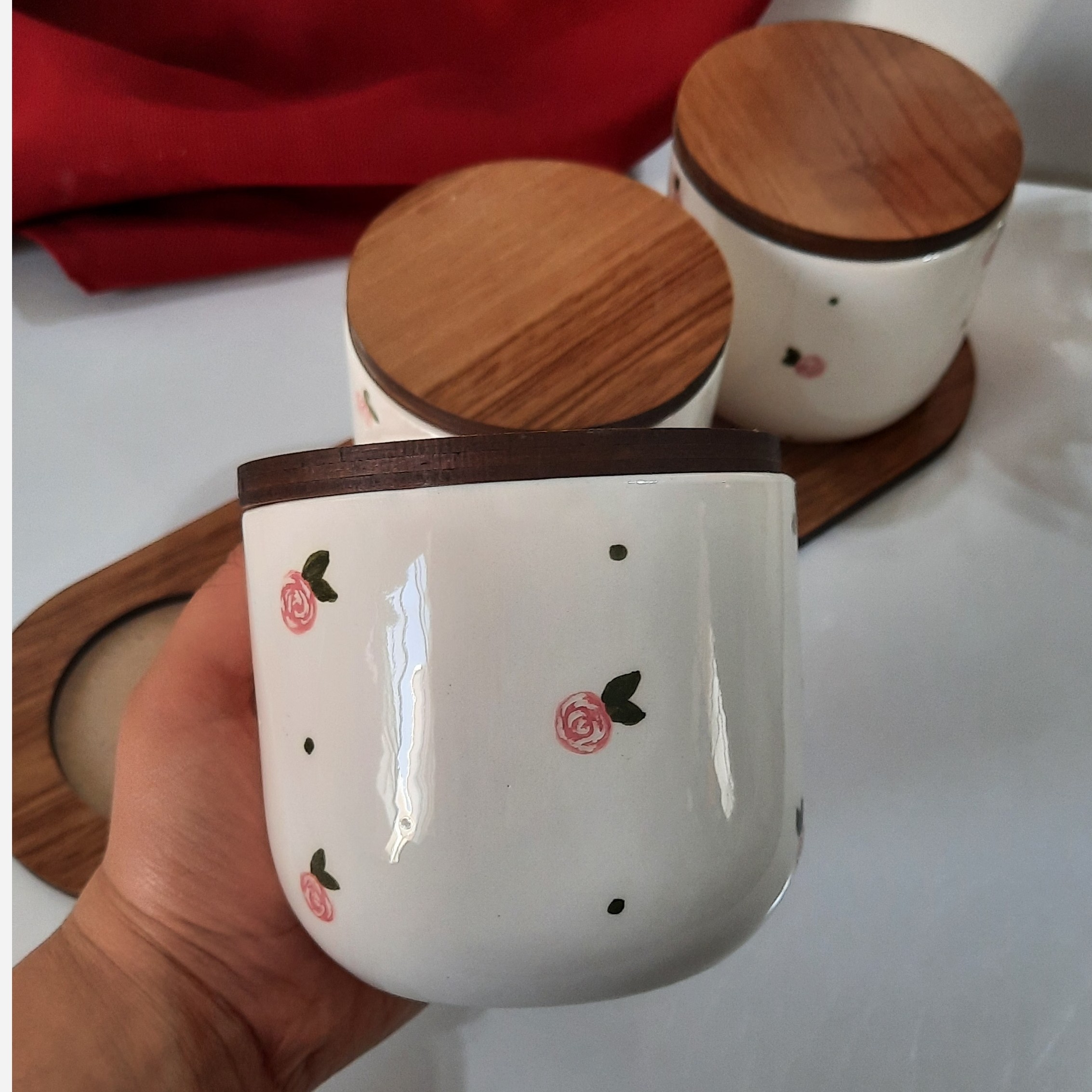 3 عدد بانکه بزرگ و 3 عدد بانکه کوچک همراه با درب طرح گل رز سرامیکی از کارگاه تولیدی بدون واسطه