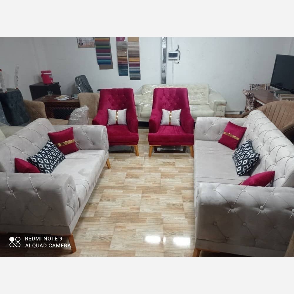 چستر یونانی 7نفره کلاف چوب روس کف اسفنج 35 کیلو بدنه اسفنج 25 کیلو پایه فلز و پایه ساده چوبی این کالا یک کار سفارشیه و به سلیقه مشتری تولید میشه