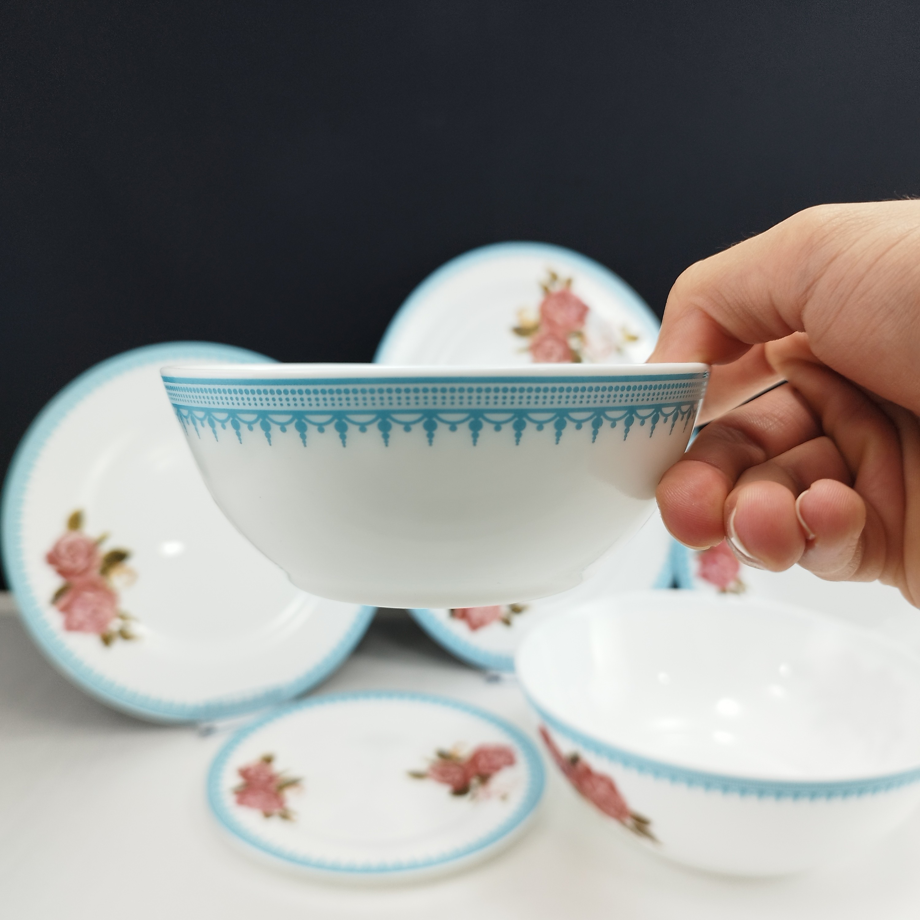 سرویس های غذاخوری آرکوپال 26 پارچه برند اوپال در طرح ها و نقش های بسیار زیبا و قالبی جذاب با کیفیت رنگ بسیار عالی و ثابت توسط کارخانه ی مقصود تولید و روانه ی بازار گردیده این ظروف در ابعادی مناسب و کیفیت قابل رقابت با آرکوپال فرانسه و اسپانیا تولید شده همه ی اقلام این ظروف قابلیت قرارگیری در ماشین ظرفشویی و مایکروفر را دارا می باشند و این قابلیت که در پشت ظروف نیز حک شده بیانگر مقاومت بالای آن در مقابل شوک حرارتی و همچنین ثابت ماندن رنگ آن تحت شرایط پر فشار ماشین ظرفشویی می باشد این سرویس شامل : 6 عدد بشقاب برنج خوری 6 عدد بشقاب خورش خوری 6 عدد پیش دست 6 عدد پیاله ماست خوری 1عدد کاسه بزرگ سالاد و 1 عدد دیس بیضی شکل می باشد این ظروف در بسته بندی زیبا و مطمئنی قرار دارد که برای جابجایی های مجدد نیز می توانید از آن استفاده کنید