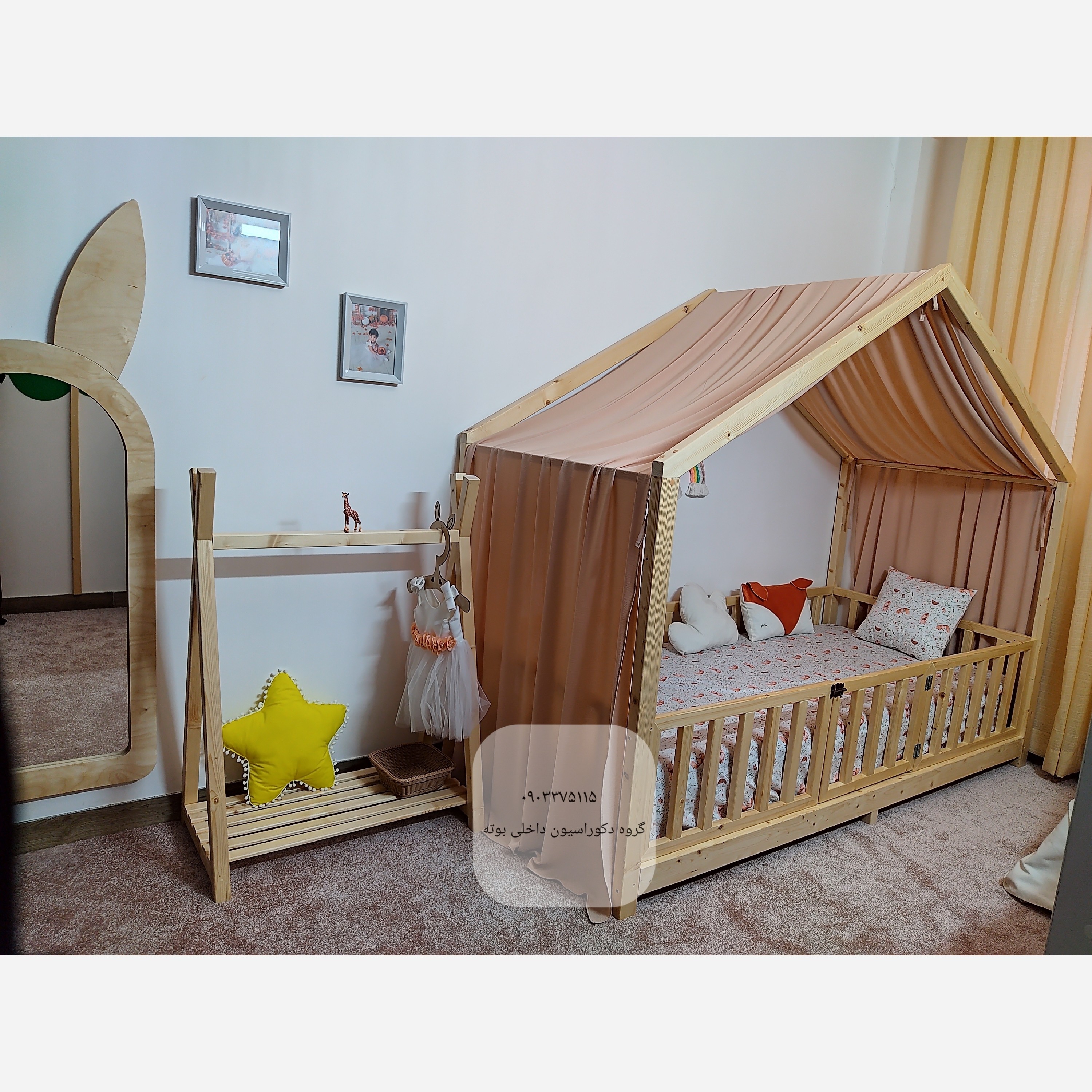 تخت خواب کلبه چوبی سایز جوان مبلمونسرا مدل 227093