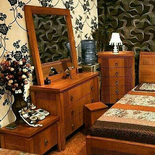 سرویس خواب نرده ای ساخته شده از چوب و ام دی اف روکشی شامل تخت ،میزآرایش،فایل 5 کشو و یک عدد پاتختی