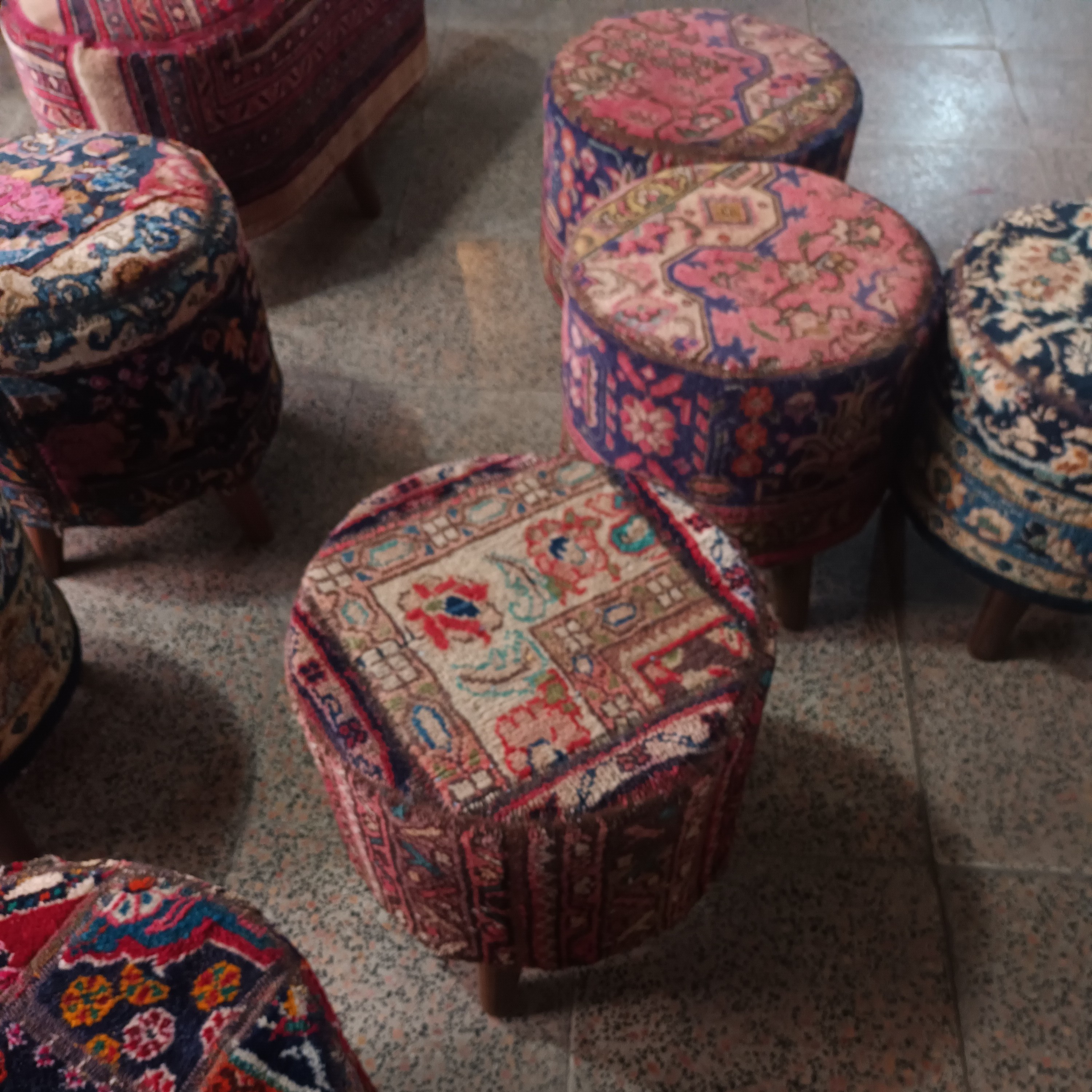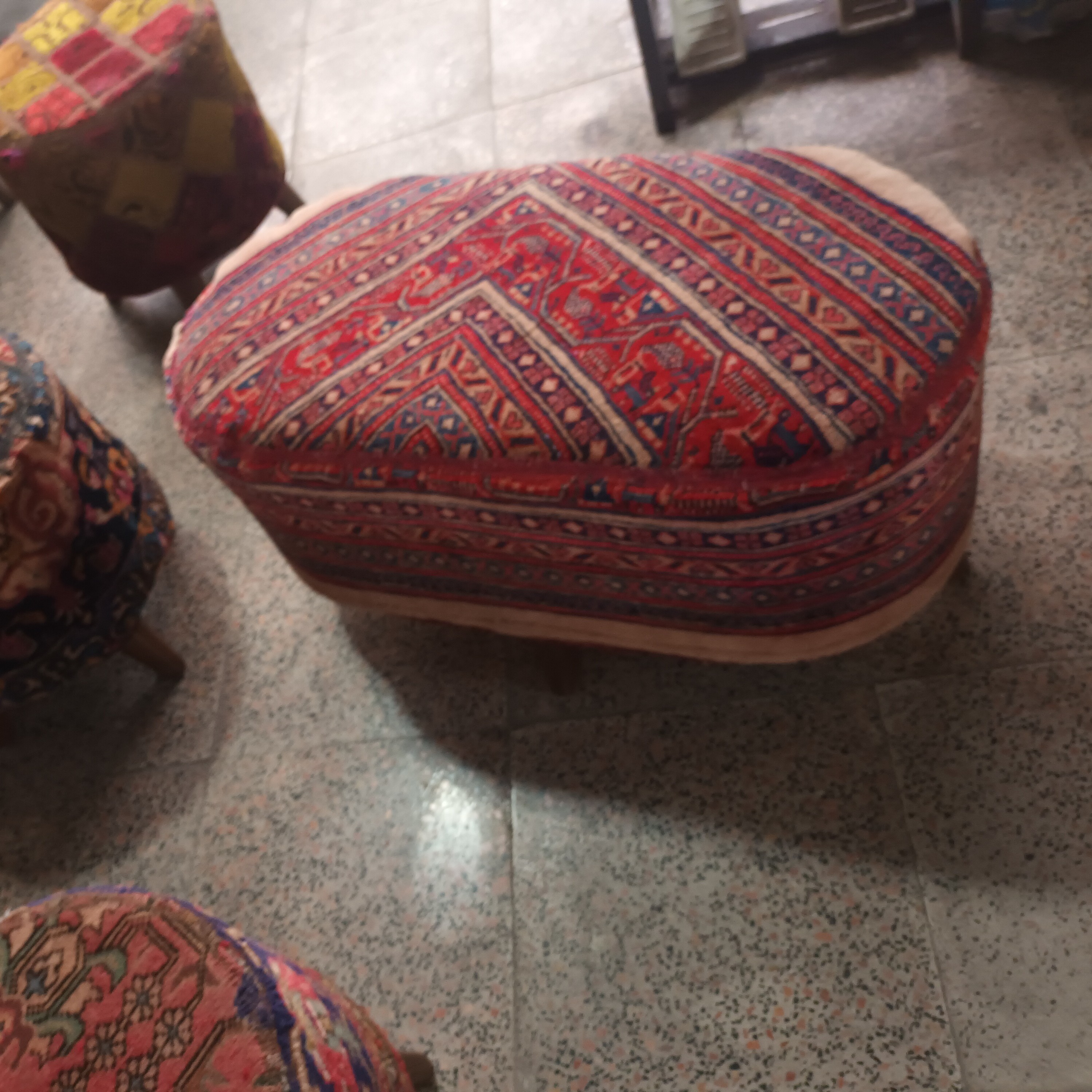 رویه کار فرش دستبافت میباشد. زیپ دار، قابل شستشو. پایه ها پلاستیکی. دوخت محکم مغزی چوب. آستری اسفنج 30 کیلو