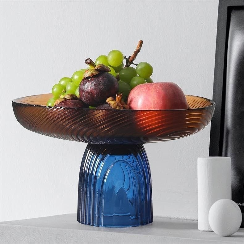 ظرف پذیرایی 2 رنگ شیشه ای دستساز وارداتی قابل استفاده برای میوه و شیرینی و حتی یه دکوری جذاب