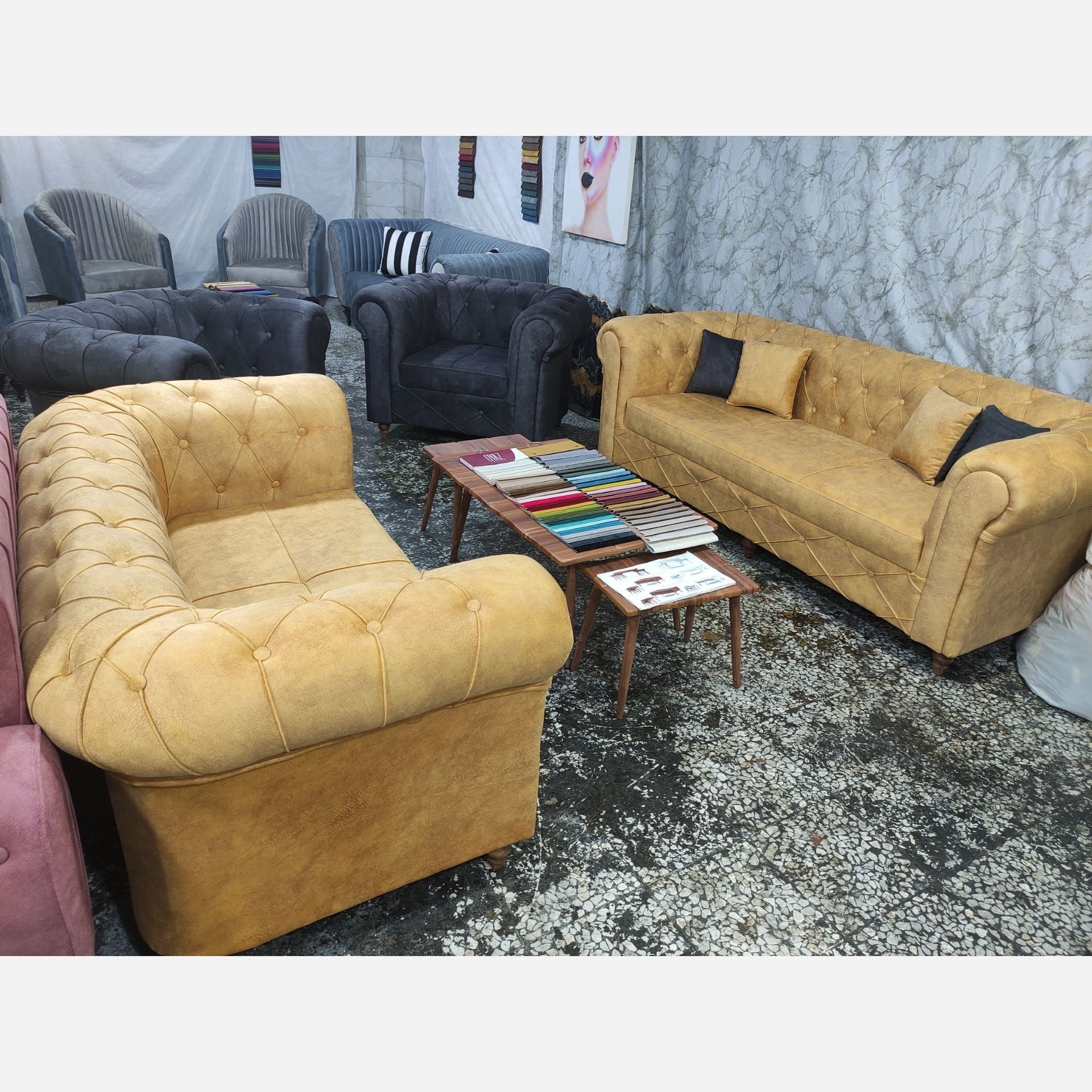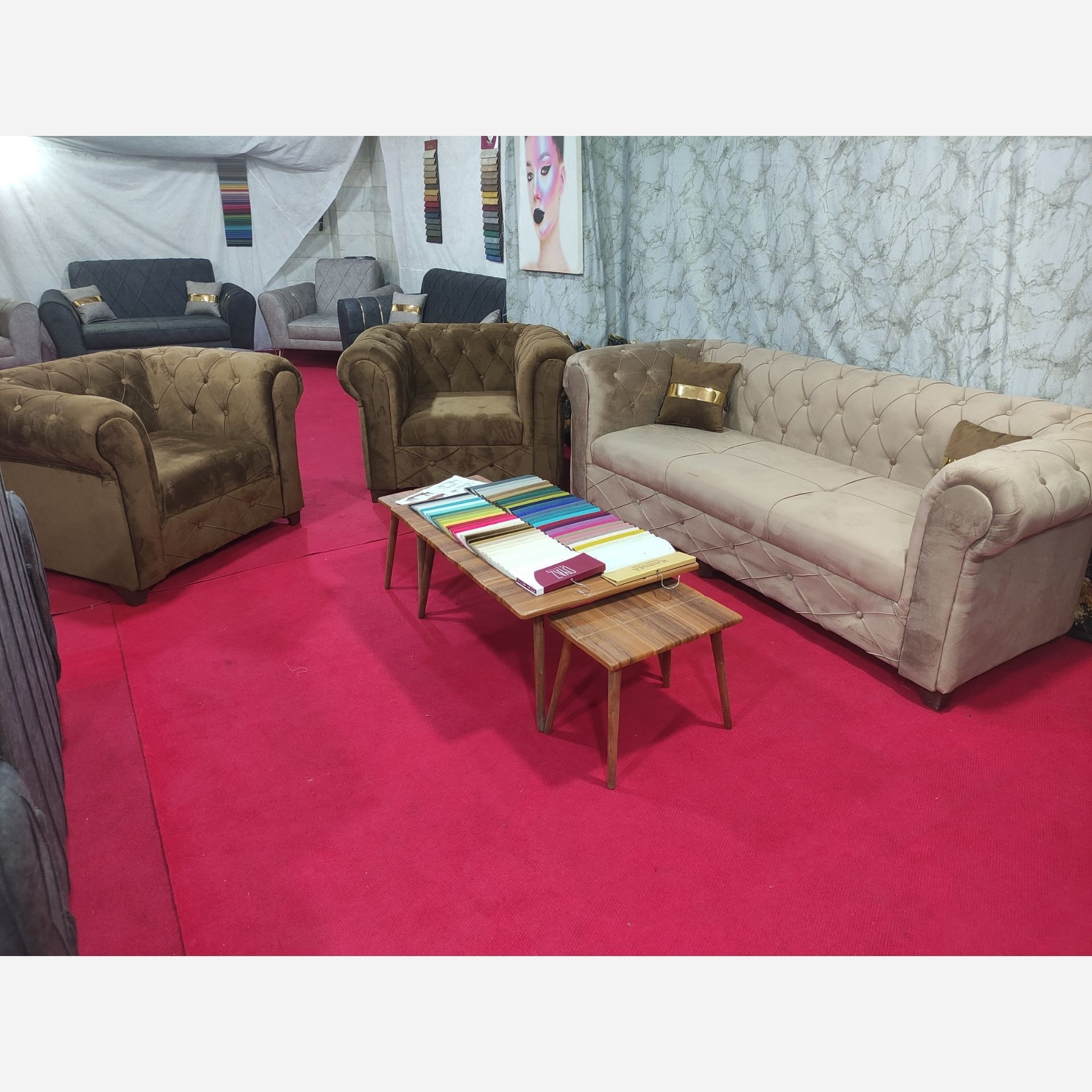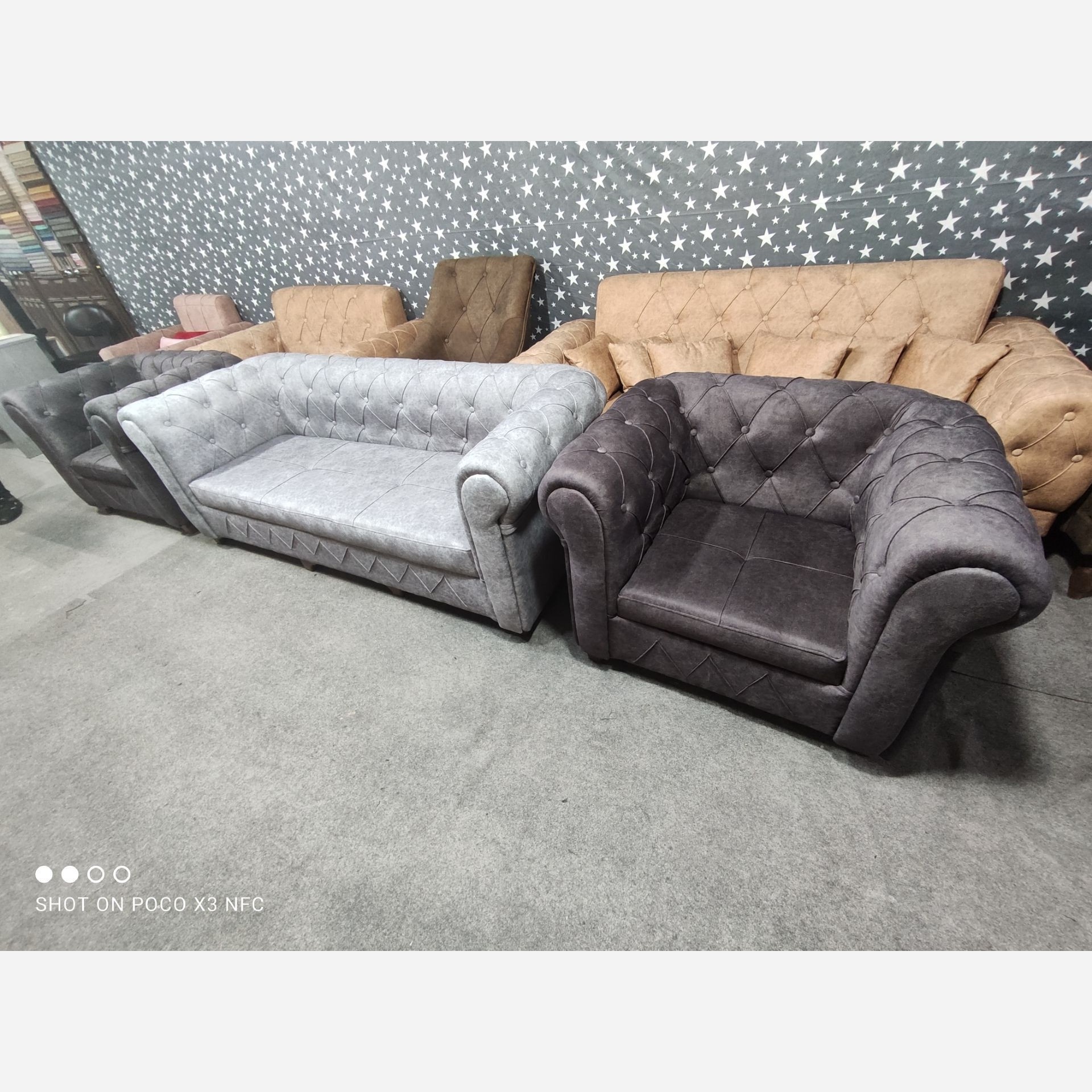 مبل چستر فیلد 7نفره👆👆 کلاف روس /کف اسفنج 35کیلو/دسته ها 18کیلویی پارچه مسکوزرین این کار یک کار سفارشیه به سلیقه مشتریه برای خانمهای زیبا پسند