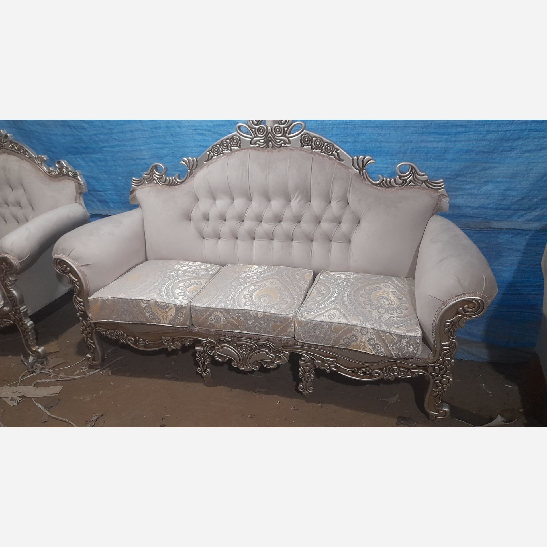 مبل ترنج 7نفره کلاف روس منبت ام دی اف25میل پارچه ساتن کریستال مازاراتی کف فوم سرد این کار یک کار سفارشیه و به سلیقه مشتری تولید میشه