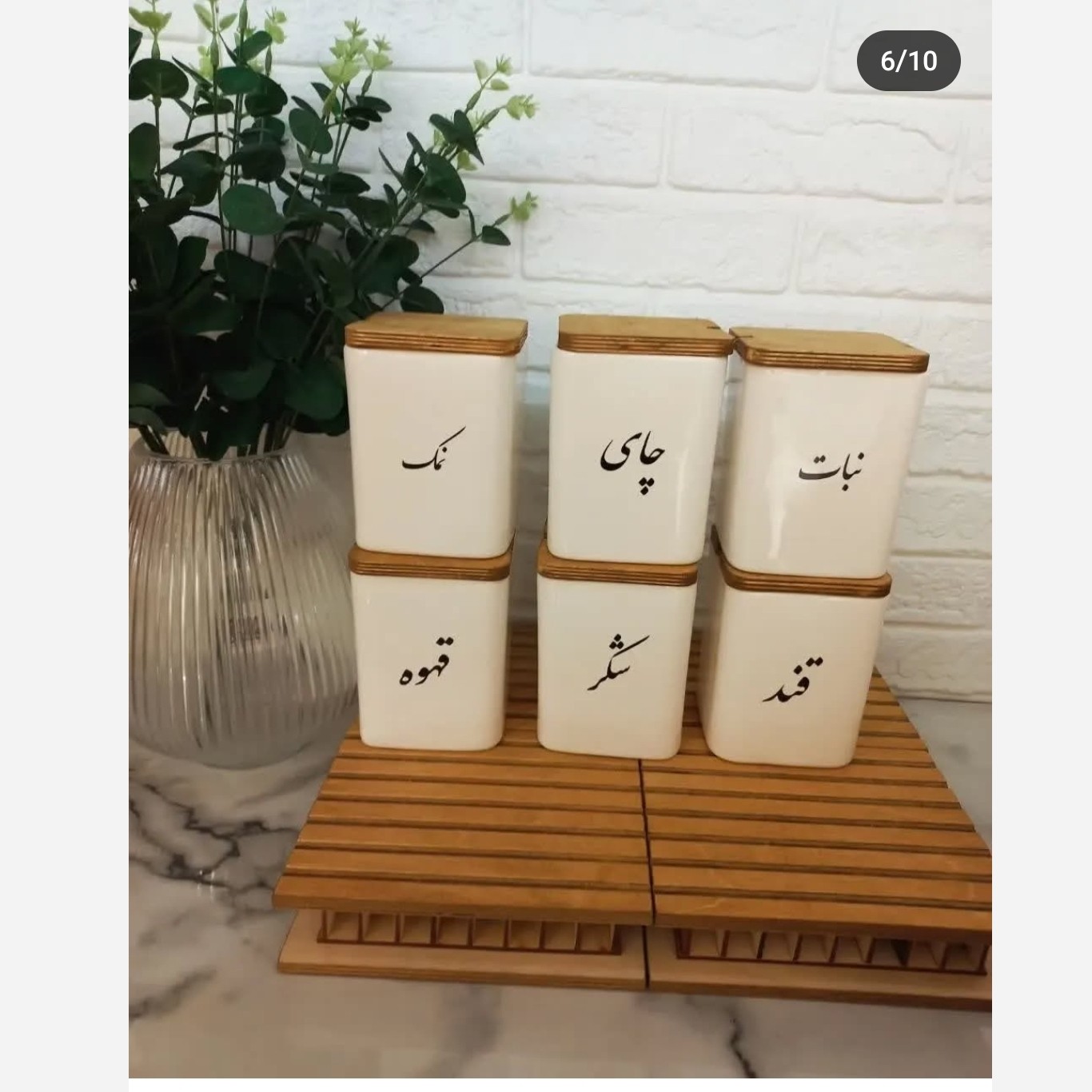 بانکه سرامیکی سایز بزرگ مناسب برای پاسماوری استند کافی بار دارای متن های شکر نبات قند قهوه چای نمک