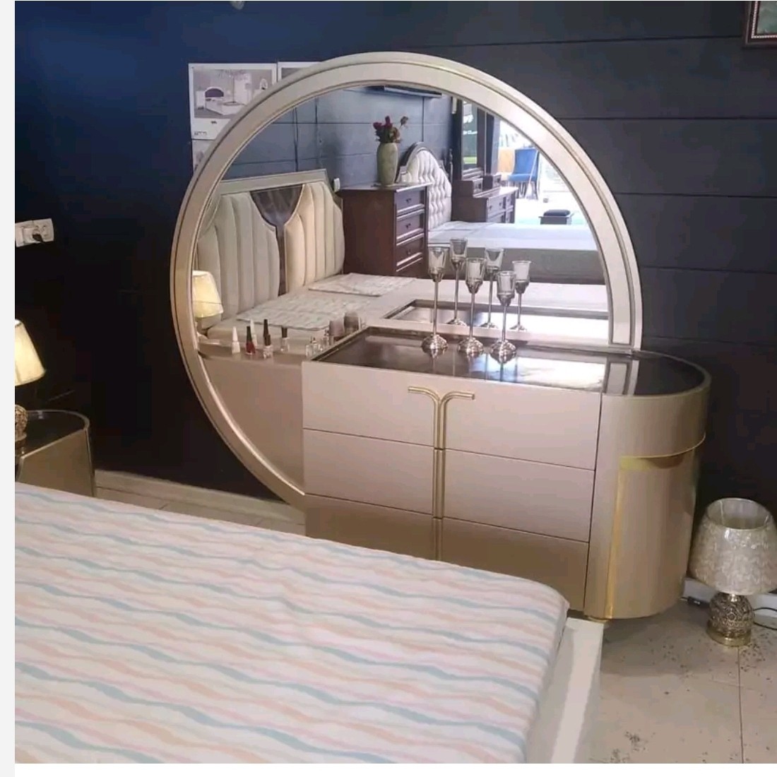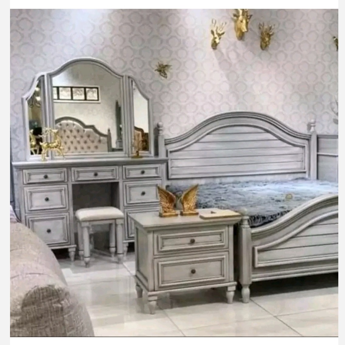 دو عدد پا تختی و میز توالت به همراه آیینه و صندلی و 2 عدد شب خواب و اباژور