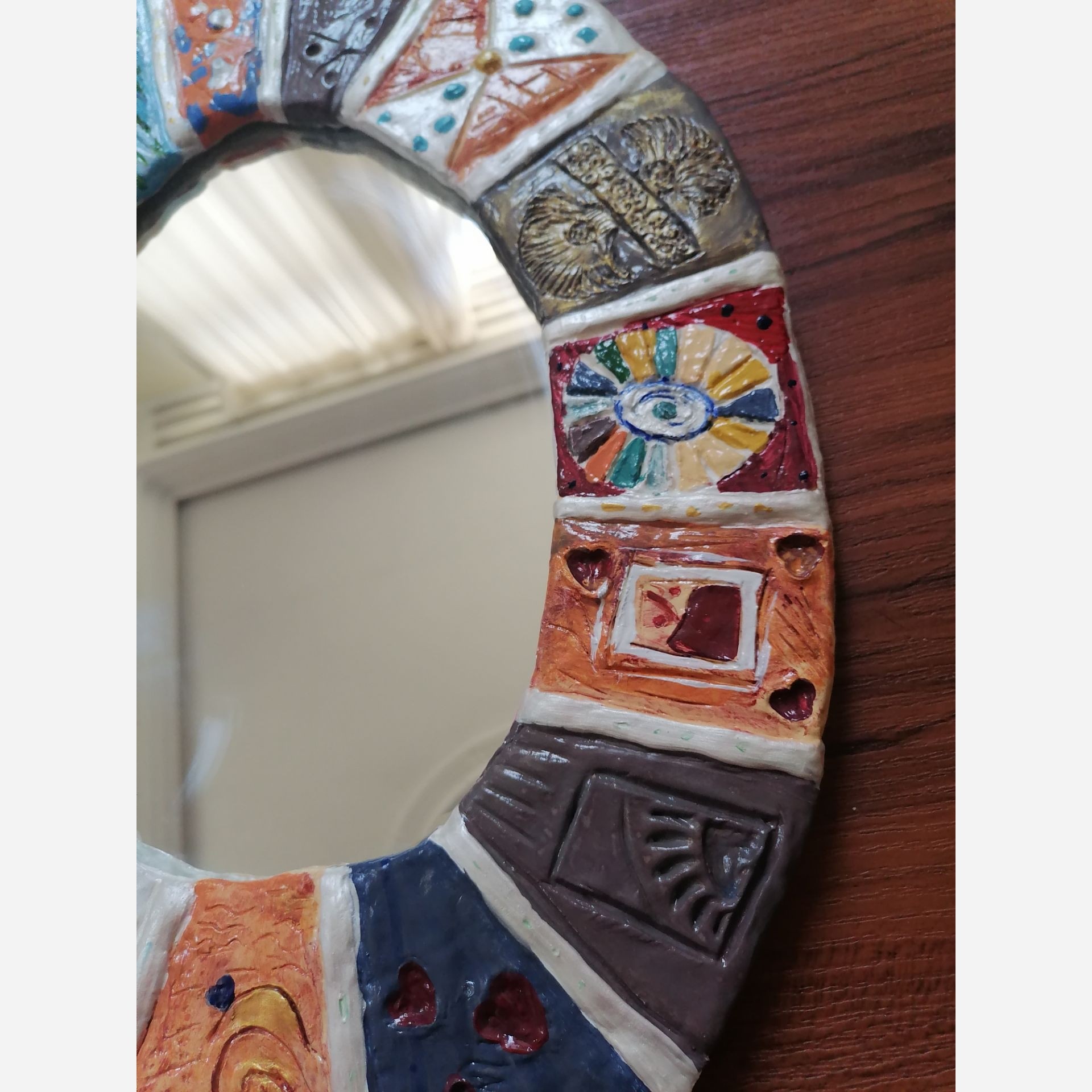 آینه بیضی آینه درجه1 با قاب فانتزی رنگی برجسته جنس قاب خمیر مجسمه سازی ایتالیایی درجه1 قاب نشکن و ضدآب قابل تمیز کردن با دستمال نمدار تماما هنردست اندازه پهنا دور قاب بر اساس سلیقه مشتری کار میشه