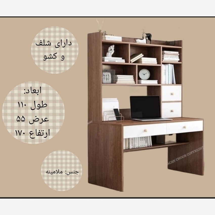 میز تحریر، کتابخانه، میز چوبی، شلف و کشو مبلمونسرا مدل 218934