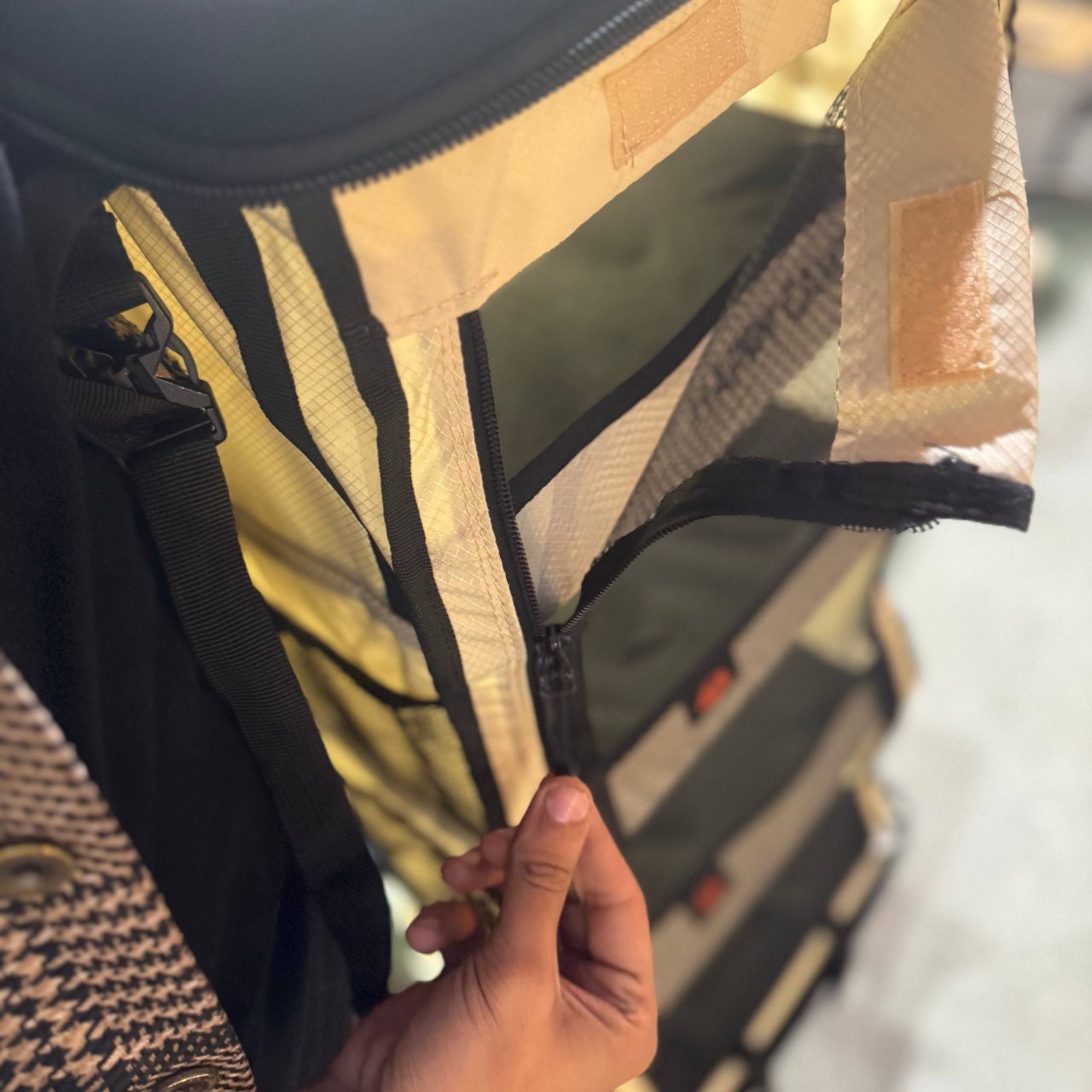 جنس درب و زیپ فوم EVA با روکش پارچه ای جنس پارچه جودون دارای توربسیار ریز جهت جلوگیری از ورود حشرات و خاک جنس طبقات PVC با روکش پارچه ای جنس قفل سنگ نیترو 5/2 تایوانی زیپ استخوانی 10 قابلیت جمع و پک شدن با حجم کم قابلیت تنظیم سایز با قفل های بالایی
