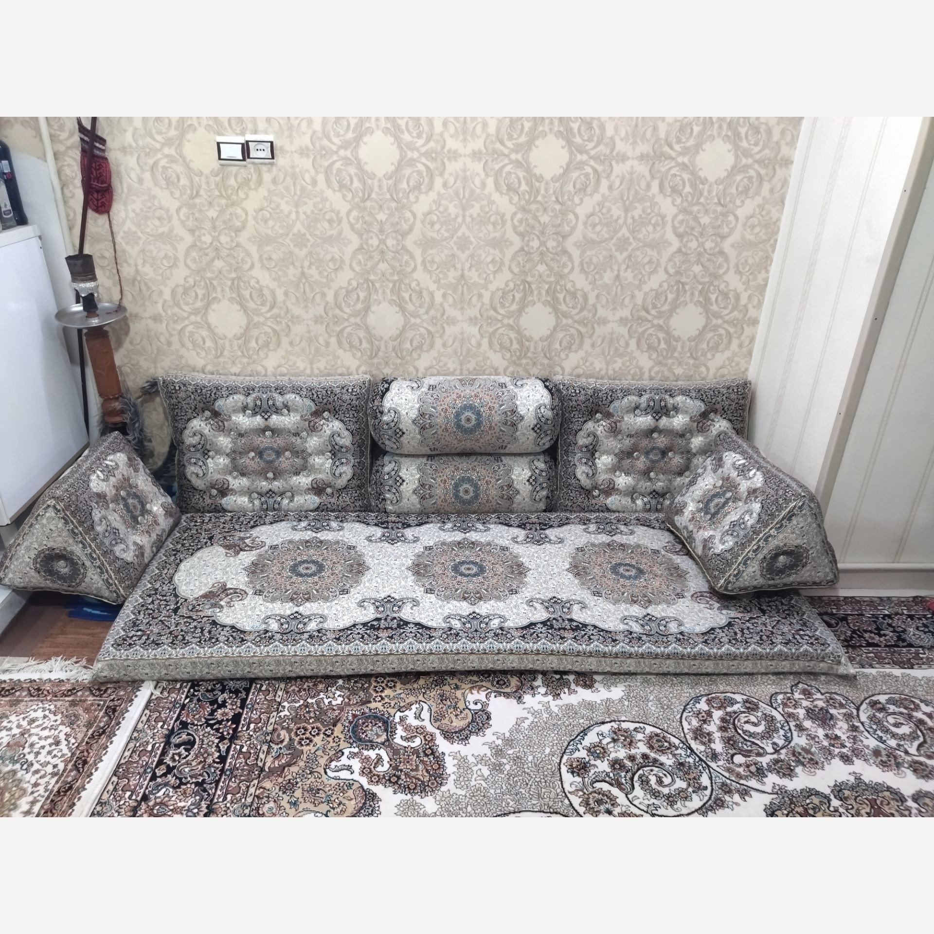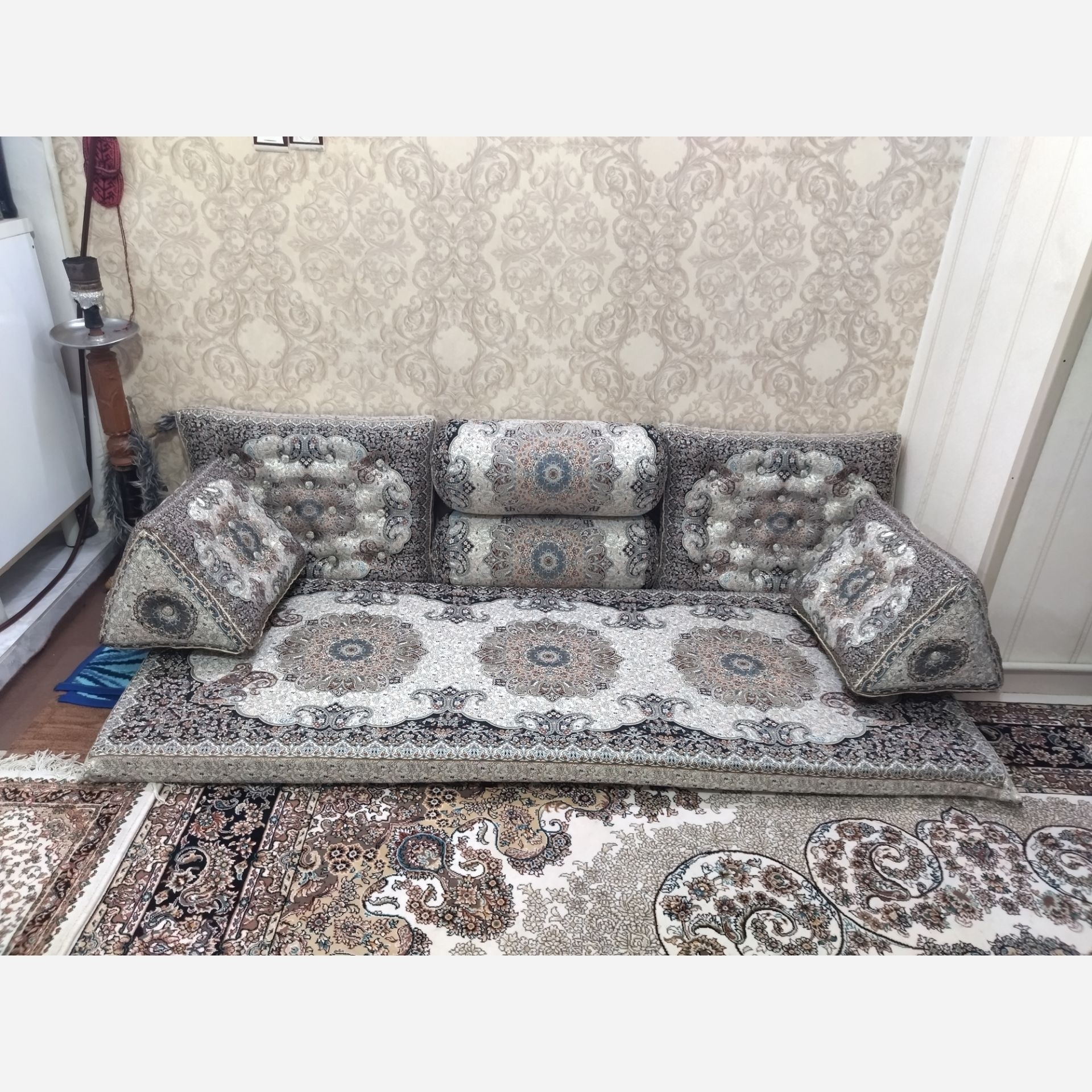 شاه نشین نقره ای دوخت ممتاز نشیمن قطر 8 مبلمونسرا مدل 212851