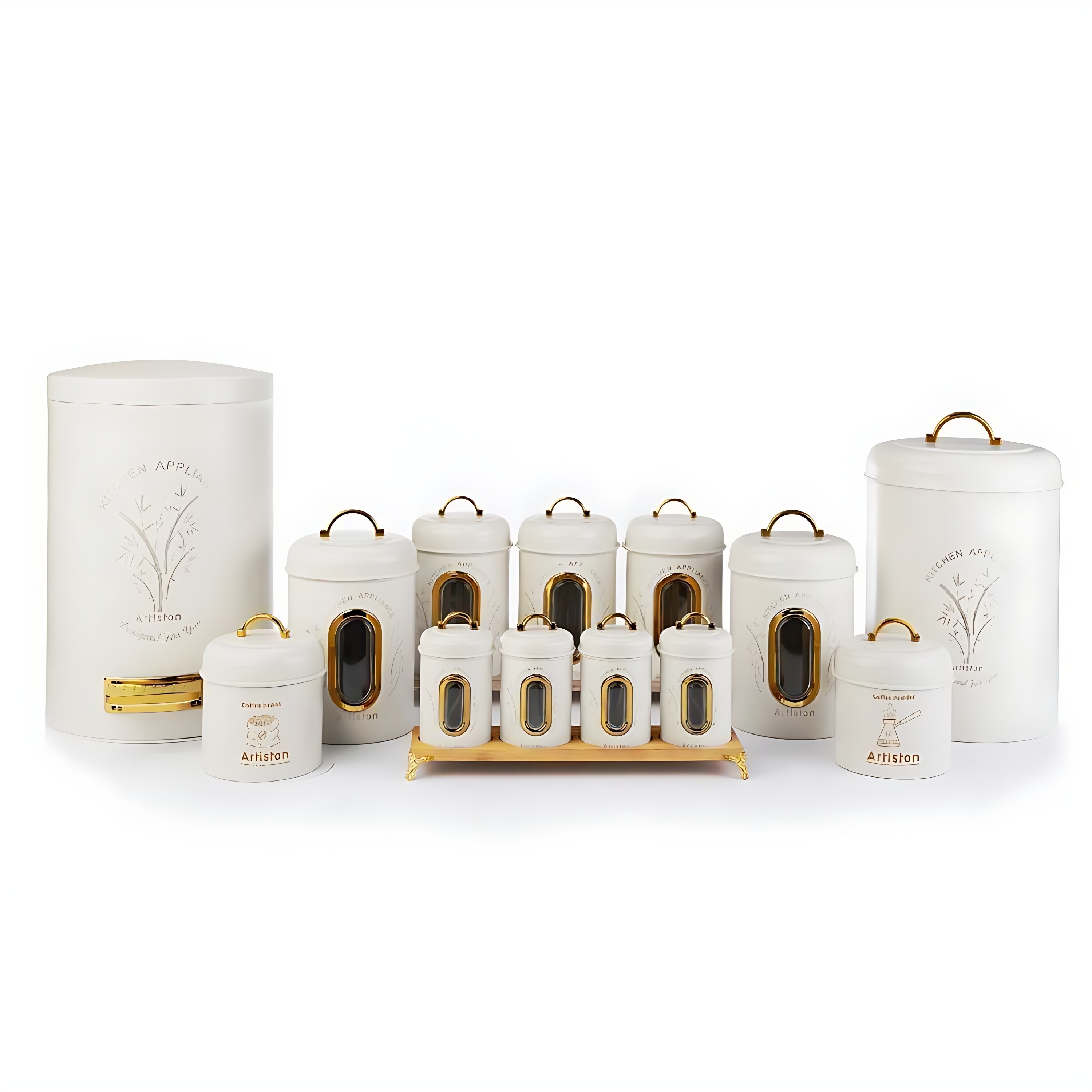 بروزترین و جدیدترین سرویس آشپزخانه از برند آرتیستون🔥 طرح ورونا👌 جنس بانکه ها فلزی درجه یک بانکه فلزی بهترین نگه دارنده ادویه جات! جلو پنجره دار اقلام 15 پارچه: سطل برنج ، سطل زباله پدالی ، بانکه حبوبات 2.5 لیتری 2 عدد ، بانکه حبوبات 1.5 لیتری 3 عدد ، بانکه ادویه 4 عدد سینی چوبی بامبو و پایه دار قابل جدا شدن ضمانت رنگ رفتی و زنگ زدگی تا 36 ماه 📍گارانتی معتبر شرکتی ❗️قبل خرید استعلام رنگ بگیرید. ⭕️ارسال رایگان⭕️