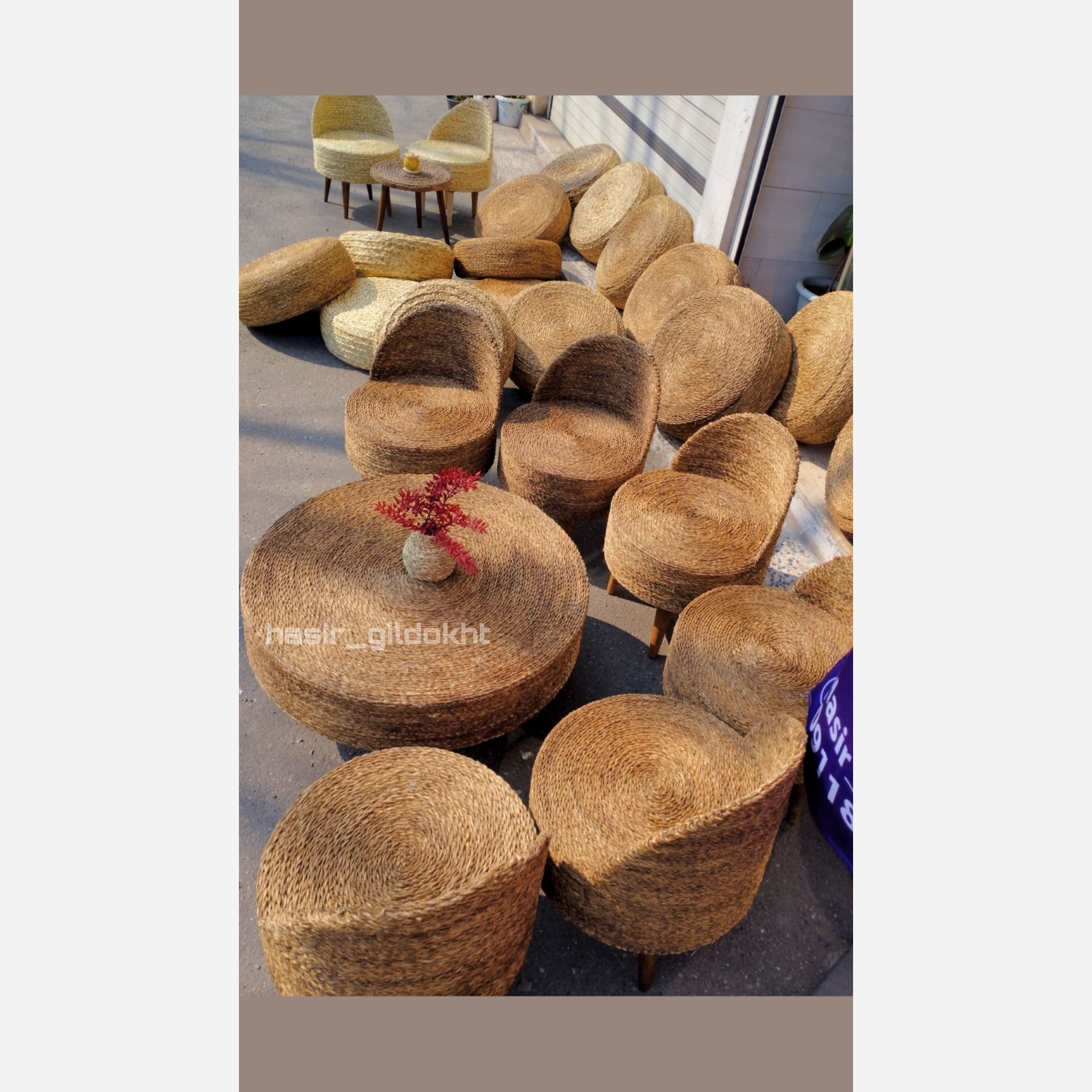ست 6 نفره شامل 6 صندلی حصیری پایه چوبی خراطی شده و قابل جداسازی با تحمل وزن 150کیلو و یک عدد میز 80 سانت زیره همه کارا کاملا چوبی با روکش حصیری تولید کننده انواع محصولات حصیری آدرس:رشت بلوار بهشتی روبرو سازمان صنعت معدن/فروشگاه حصیرگیلدخت 09118472571