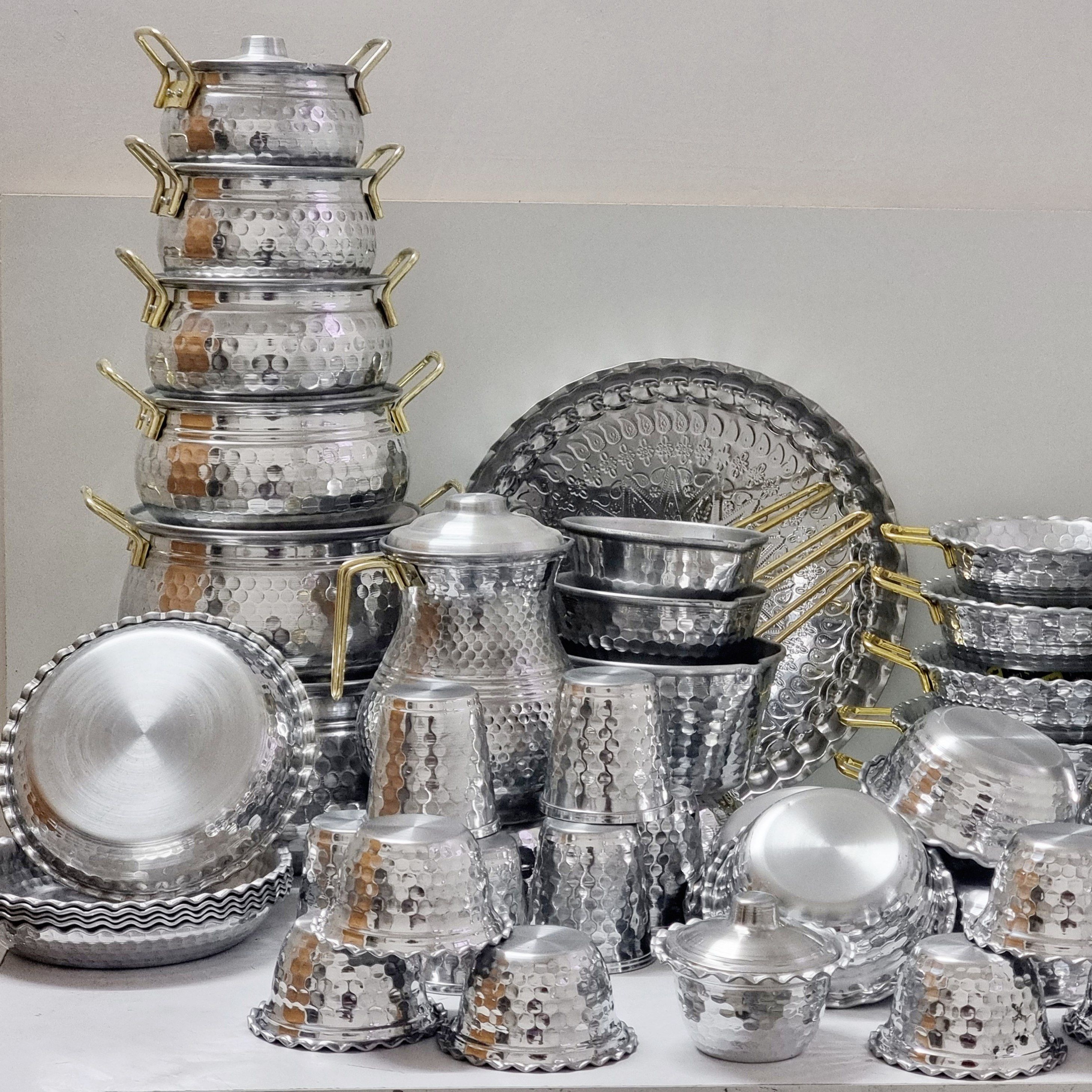 ✅ پک 10تایی 53 پارچه روحی چکشی دالبری شامل10 تا سرویس کامل 53 پارچه دالبری که هرسرویس شامل: قابلمه 6تایی چکشی دسته طلا سایز 14 الی 24 تابه دو دسته چکشی دالبری سایز 18 الی 26 شیرجوش چکشی سایز 14 الی 18 کتری قوری چکشی قندان چکشی دالبری پارچ چکشی لیوان چکشی 6 عدد کاسه ماست چکشی دالبری 6 عدد کاسه آبگوشت چکشی دالبری 6 عدد سینی روی سایز 1 چکشی دالبری 6 عدد سینی روی سایز 4 طرحدار 1 عدد .