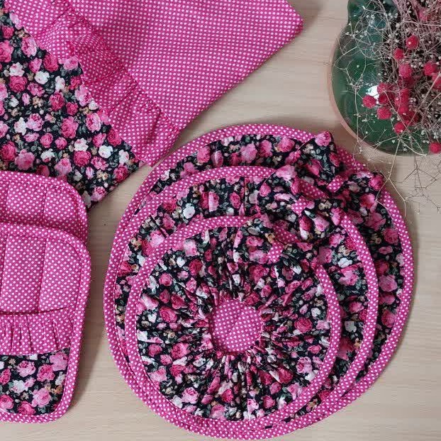 ست سه تیکه دمکنی ، کتان نخ، دور نوار اریب پارچه ای دوخت شده، قابل سفارش در طرح و رنگ دلخواه مشتری