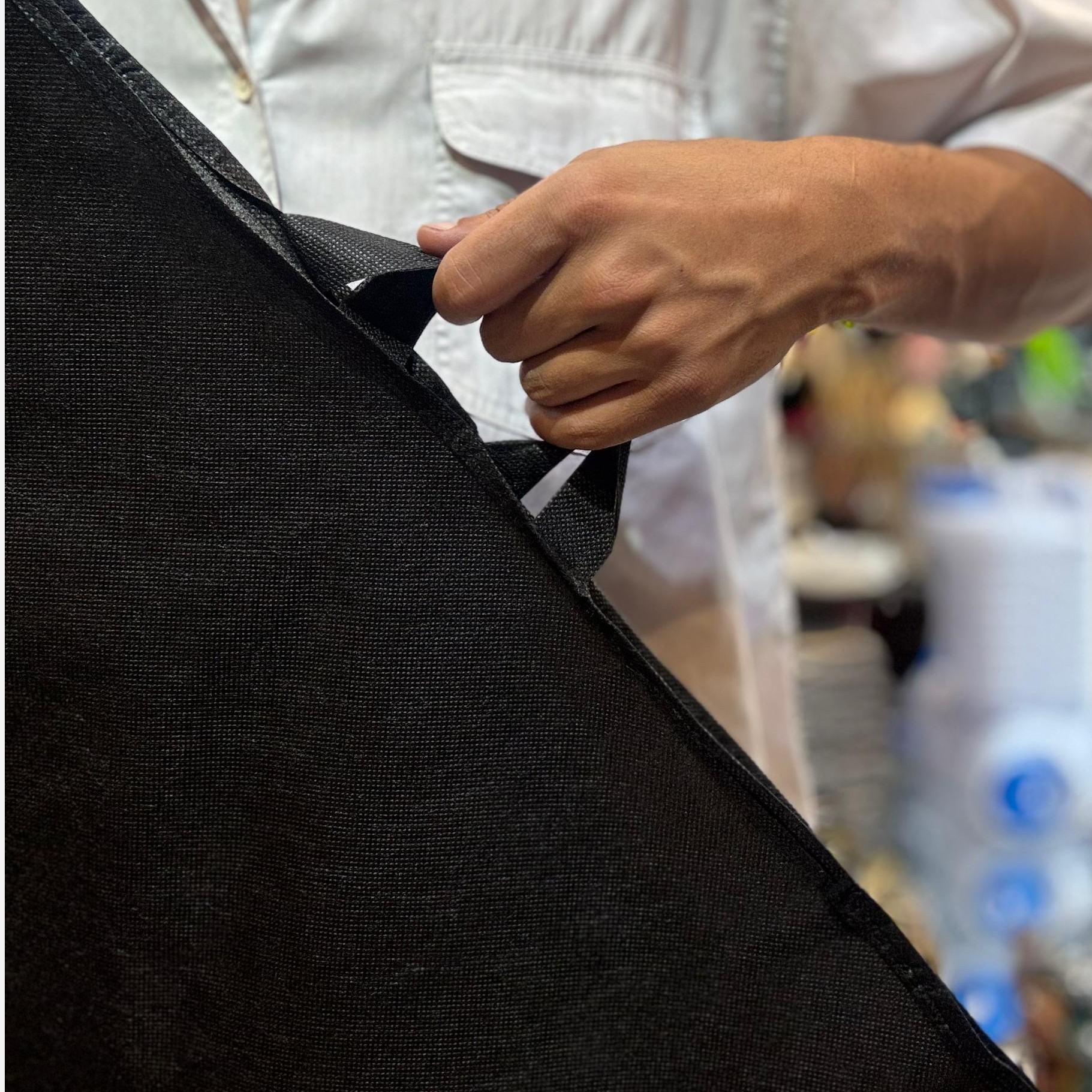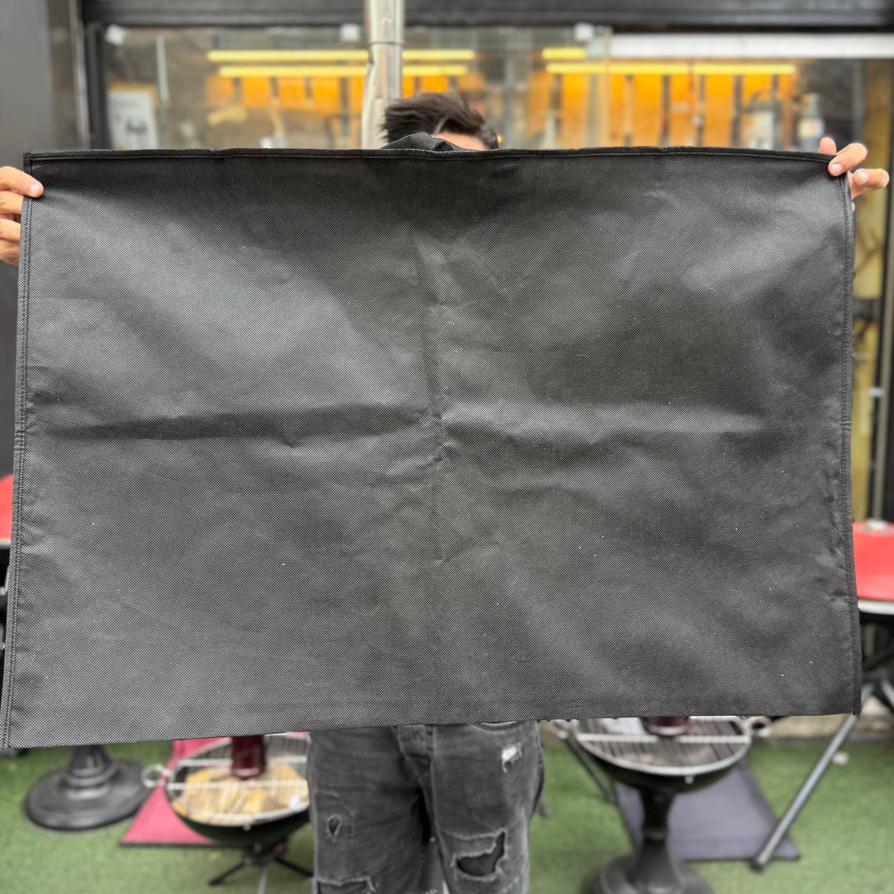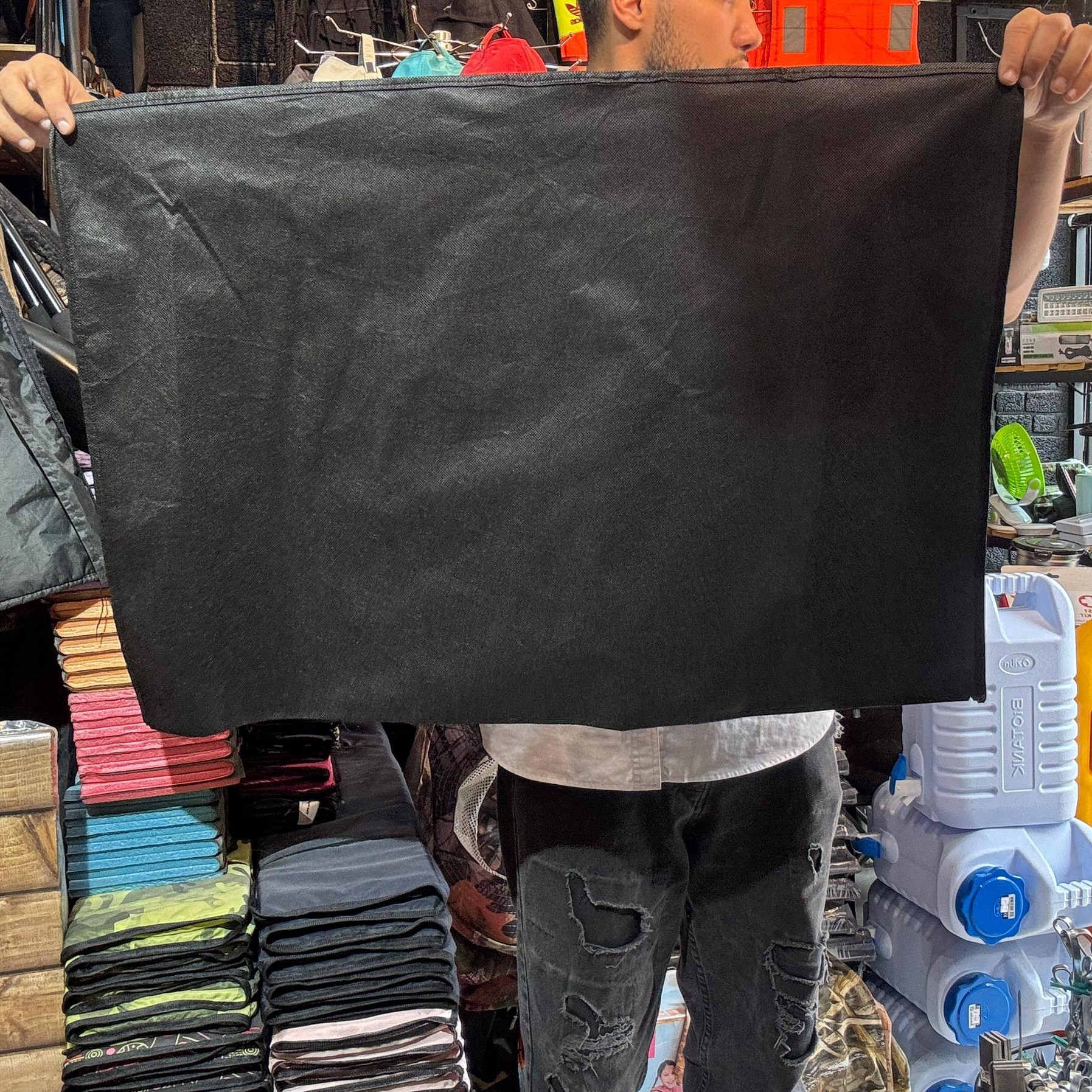 جنس اسپان باند 40 گرمی مستطیلی دارای دسته و دو بند طرفین رنگ مشکی مناسب برای صندلی های سفری تاشو