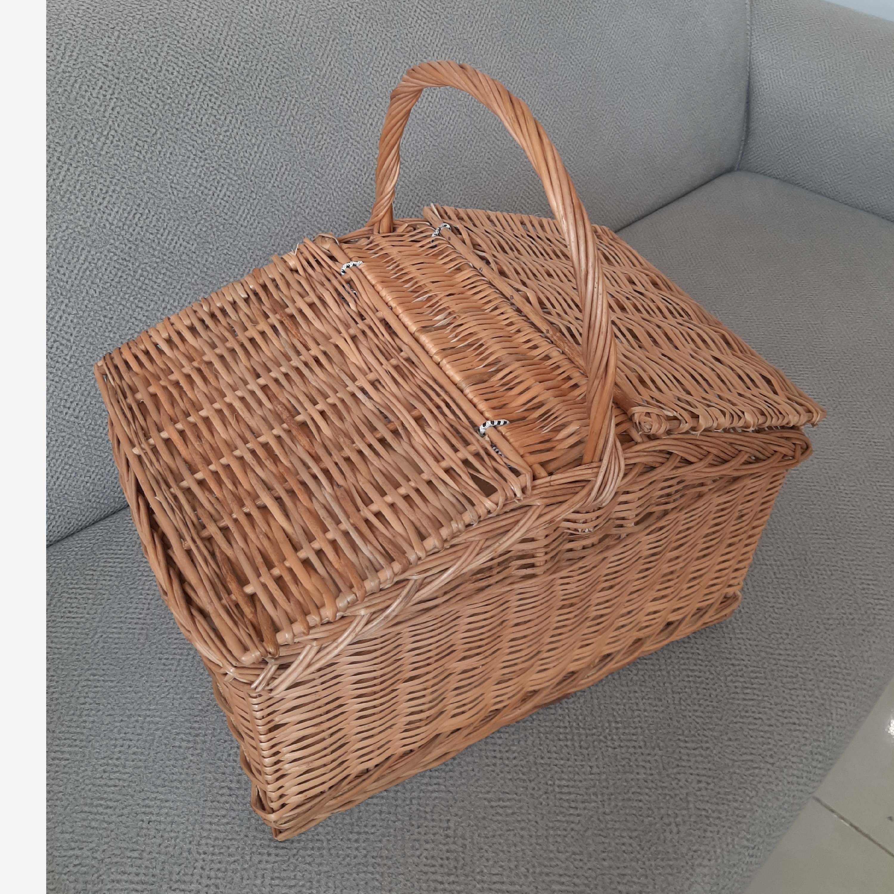 سبد پیک نیک مدل کلبه ای بافته شده از چوب نوعی درخت بید سایز کوچک بدون رنگ و قابل شستشو استهکام و تحمل وزن بالا