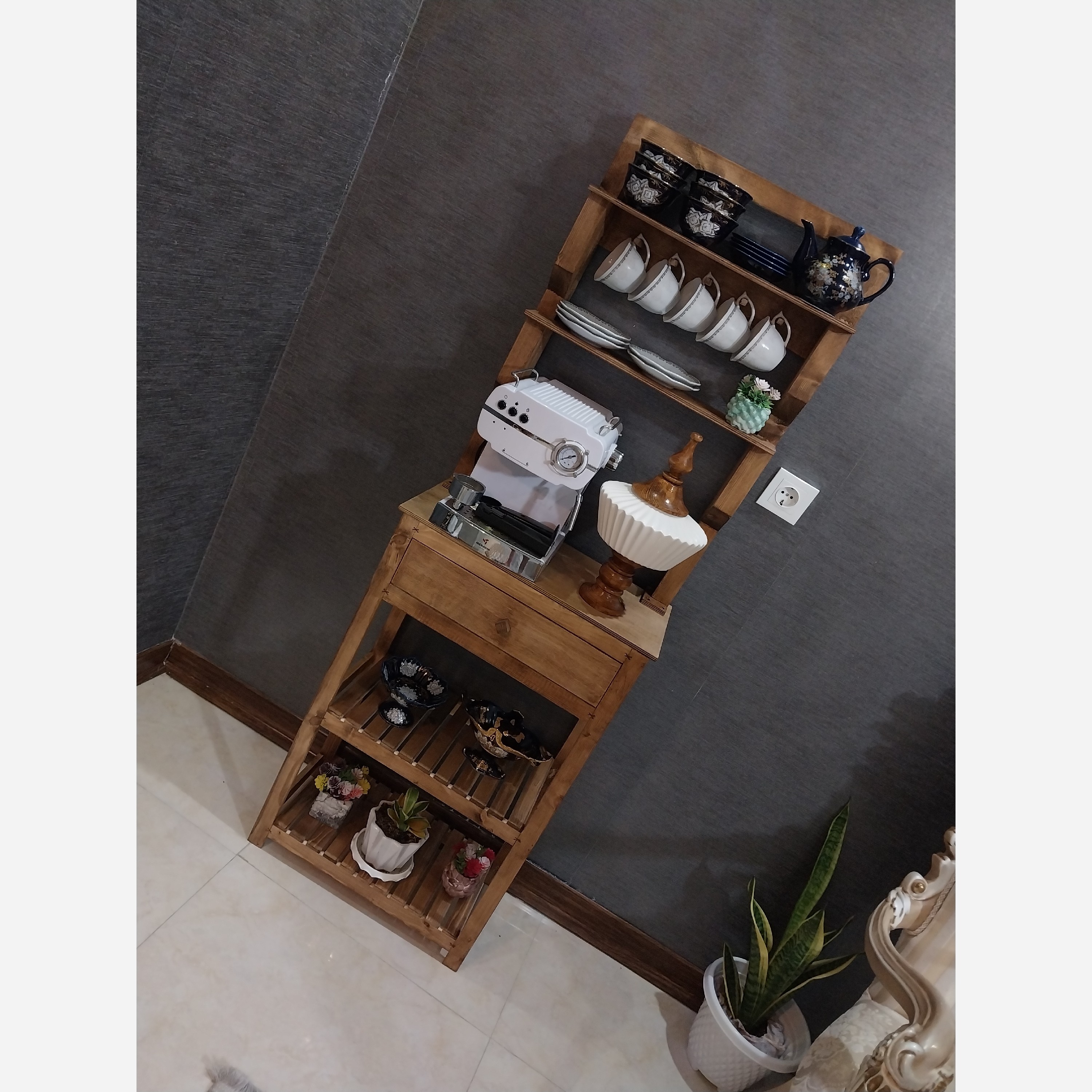 کافی بار لوکس چوب روس با شلف سهطبقه آویزدار** | قابل جداسازی | ارسال آسان | مناسب پذیرایی حرفهای خانه و کافه" میزی که هم **کافی بار چوبی** لوکس است، هم **فضای ذخیرهسازی هوشمند** دارد و با شلف سهطبقهاش پذیرایی شما را حرفهای میکند! تمام این امکانات در یک طراحی **منعطف و قابل جداسازی** – ارسال راحت، استفاده بیدردسر!" > ✅ **متریال اصیل:** بدنه اصلی از **چوب روس مقاوم** با عمر طولانی > ✅ **شلف سهطبقه آویزدار:** لیوانها را آویز کنید + 3 طبقه کاربردی برای وسایل پذیرایی > ✅ **قابلیت تفکیک:** شلف با پیچ از کافی بار جدا میشود > ✅ **ذخیرهسازی حرفهای:** کشوی بزرگ + 2 طبقه رویه برای اسپرسوساز/قهوهساز > ✅ **کاربری همهکاره:** ایدهآل برای **منزل، شرکت، هتل، کافیشاپ و رستوران** > ✅ **ابعاد بهینه:** 150cm ارتفاع × 52cm طول × 28cm عرض اگر دنبال فضای پذیرایی شیک **بدون اشغال جای زیاد** هستید، این محصول با طراحی عمودی و قابلیت تنظیم پلکانی شلفها، **همهچیز را در دسترس** قرار میدهد! جداسازی قطعات، ارسال آن را **کاملاً بدون ریسک شکستگی** میکند." خرید عمده = تخفیف ویژه!** > - برای کافهها، هتلها و فروشگاههای لوازم خانگی: > • قیمت رقابتی با خرید عمده > • پشتیبانی از تحویل فوری > *[برای استعلام قیمت عمده پیام بدهید]* > " همین امروز **فضای پذیرایی خود را متحول کنید!** > 🔻 این محصول **تکدستگاه** با گارانتی 18 ماهه 👇 > [دکمه «افزودن به سبد خرید»] > 🔺 برای **پیشفاکتور عمده** پیام دهید . #کافی_بار_چوبی #میز_پذیرایی #لوازم_کافی_شاپ #میز_چوبی_روس #خرید_عمده_لوازم_خانگی #شلف_آویزدار #صنایع_چوب #دکوراسیون_کافه