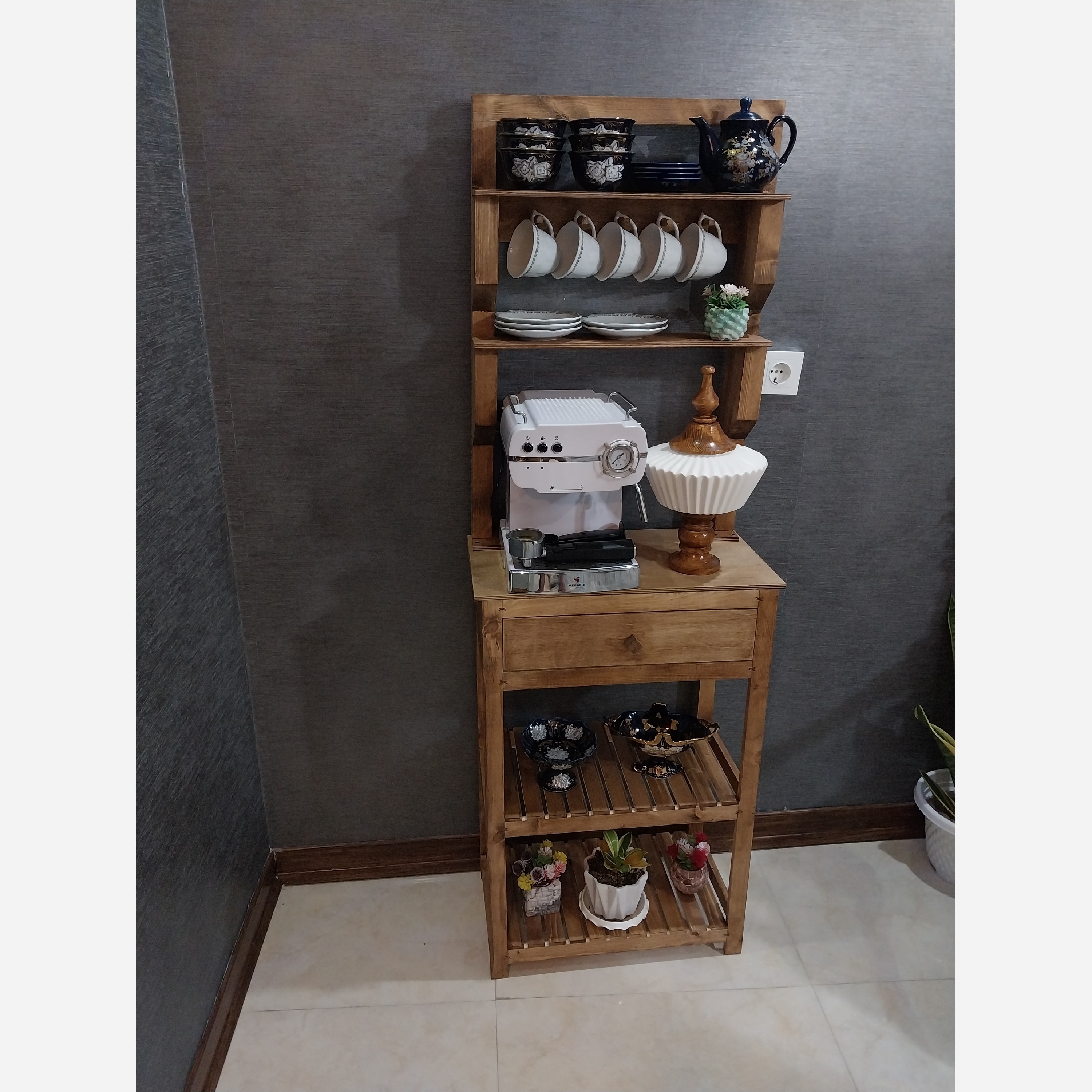 کافی بار لوکس چوب روس با شلف سه طبقه آویز دار ،قابل جداسازی ،ارسال آسان،مناسب پذیرایی حرفه ای خانه و کافه مبلمونسرا مدل 217800