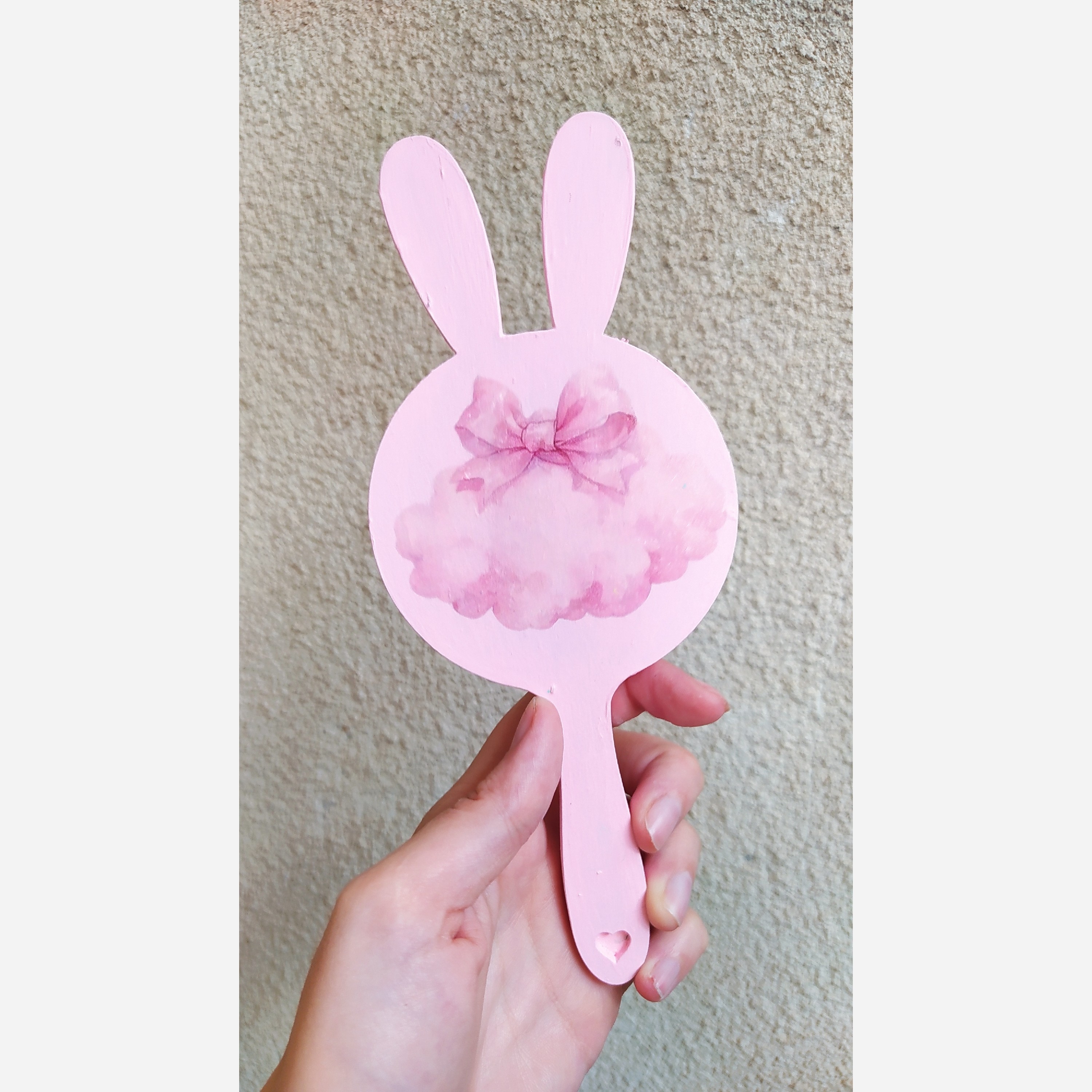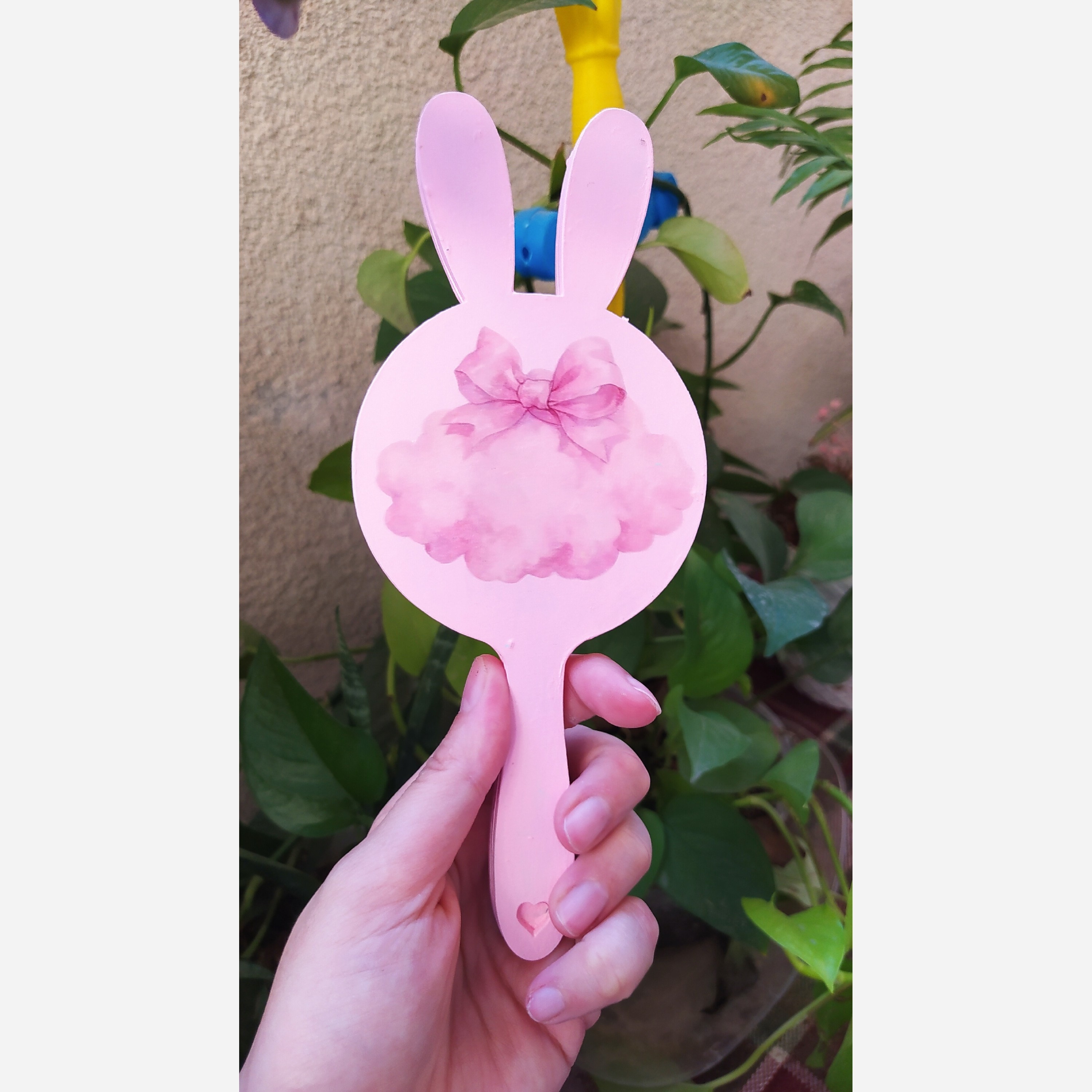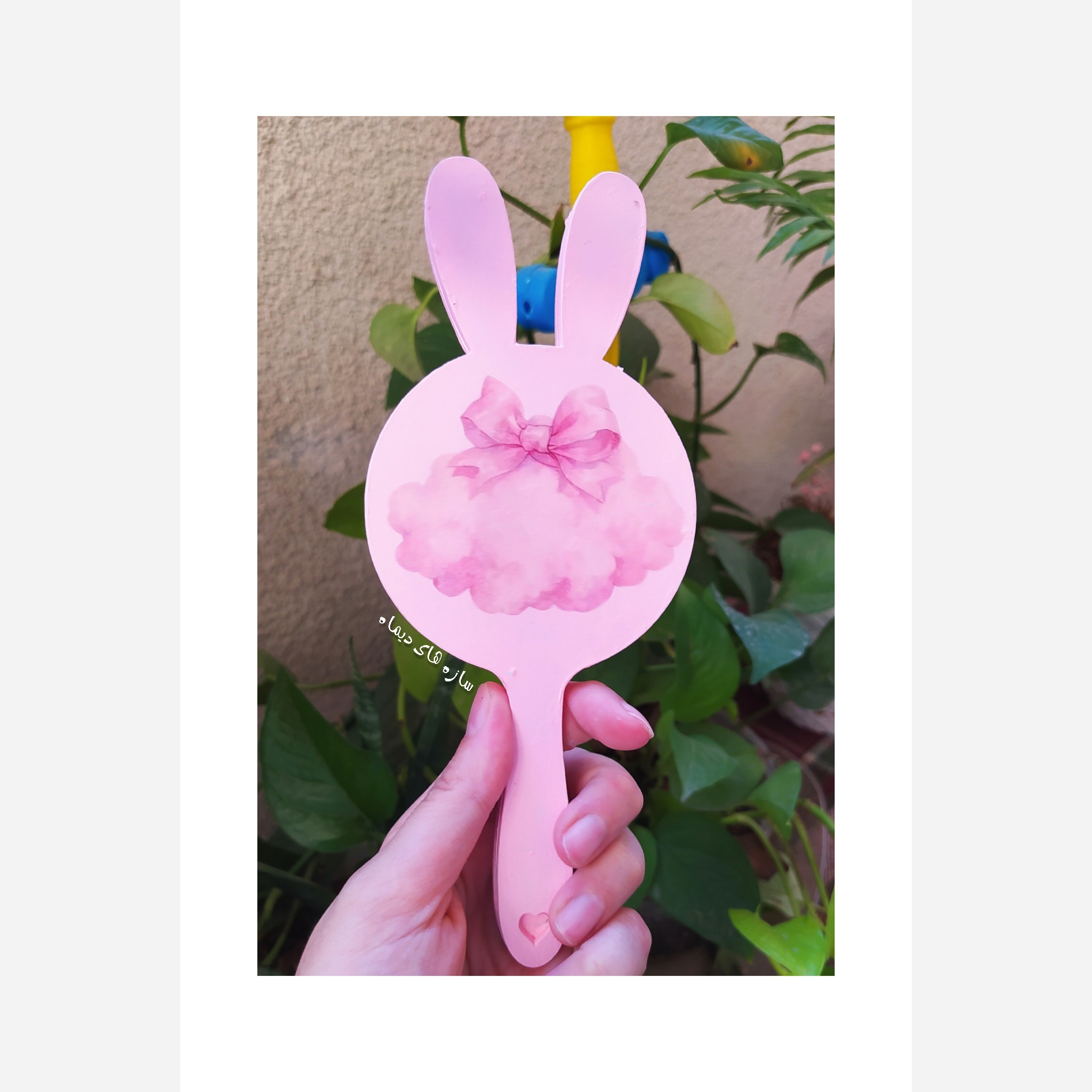 آیینه چوبی خرگوشی دارای طرح ابر صورتی یک اکسسوری زیبا که هر دختر باید همراهش باشه