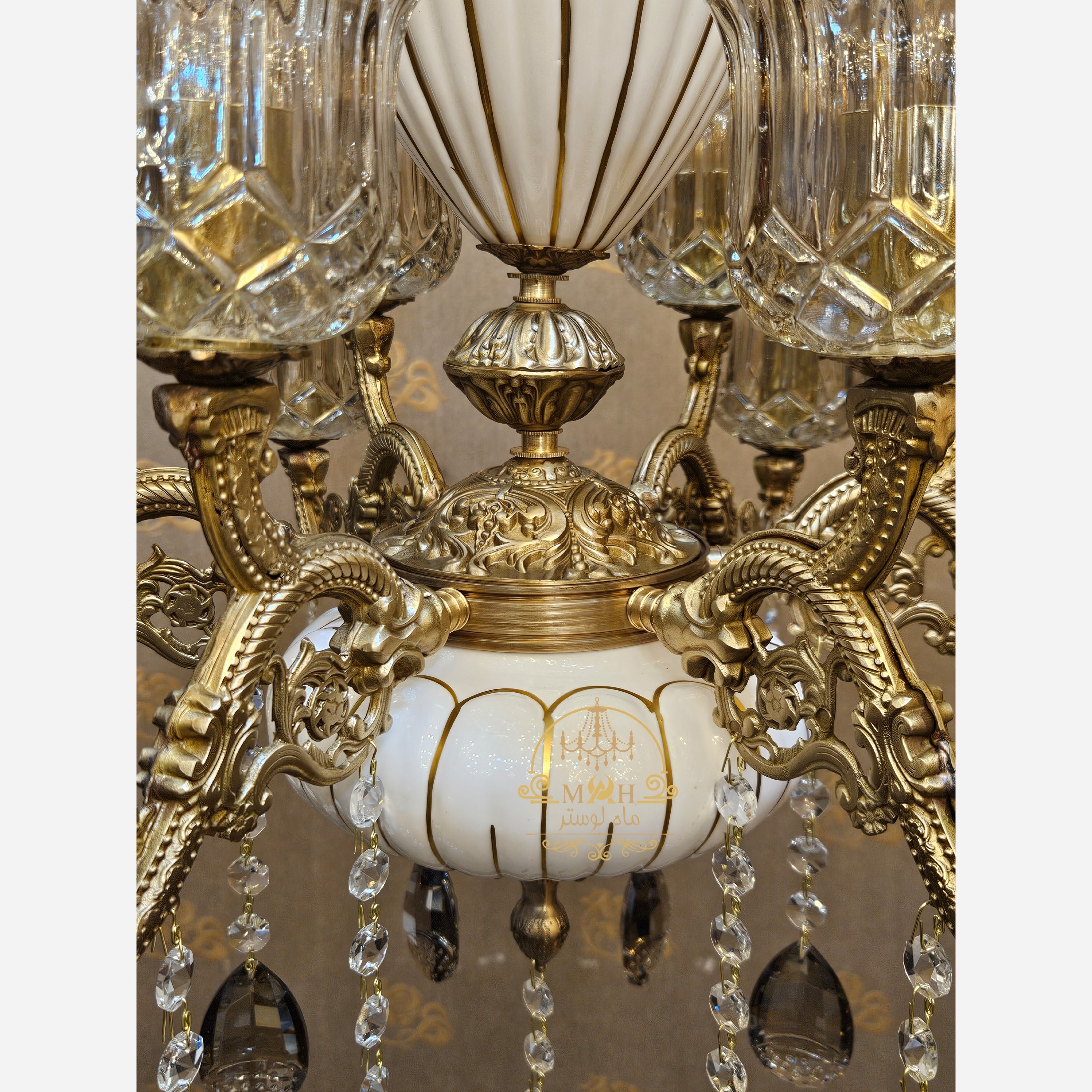 لوستر مدل گلناز 12 شعله سرامیکو برنج مبلمونسرا مدل 244820