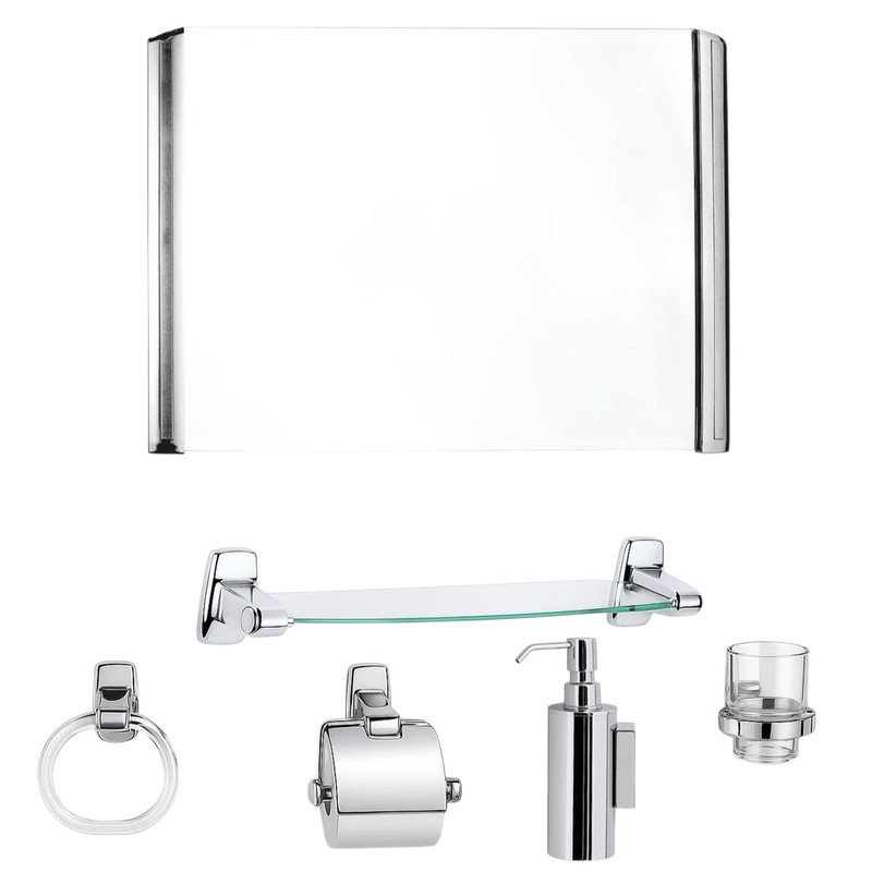 این یک ست کامل برای سرویس بهداشتی و حمام می باشد شما با خرید این ست بهداشتی دیگر نیازی به خرید هیچ ست اضافه تری نخواهید داشت اکثر نمونه های موجود در بازار از جنس پی وی سی سفید رنگ ساده بوده و جلوه بسیار زیبایی ندارد ولی این ست جلوه بسیار زیبایی به محیط حمام و سرویس بهداشتی شما می دهد. این ست شامل 6 تکه بوده که شامل: آینه / زیر آینه / جاحوله / جامسواک / جامایع / جادستمال می باشد. جنس بدنه تمامی قطعات از پلاستیک فشرده شده (ABS) بوده که استحکام بالایی دارد و در برابر آب و رطوبت مقاوم است در صورت تماس مستقیم با آب هم هیچ مشکلی نخواهد داشت. جنس پمپ مایع تنها به علت فشار وارد شده دست برای استحکام بیشتر از استیل می باشد که استیل هم در برابر رطوبت و آب مقاوم است. ابعاد آینه: 53 سانت در 36 سانت می باشد. پیچ و رولپلاک مورد نیاز نصب برای هر کدام داخل بسته بندی های آن ها می باشد و نیازی و به خرید هیچ چیز اضافه تری نیست.