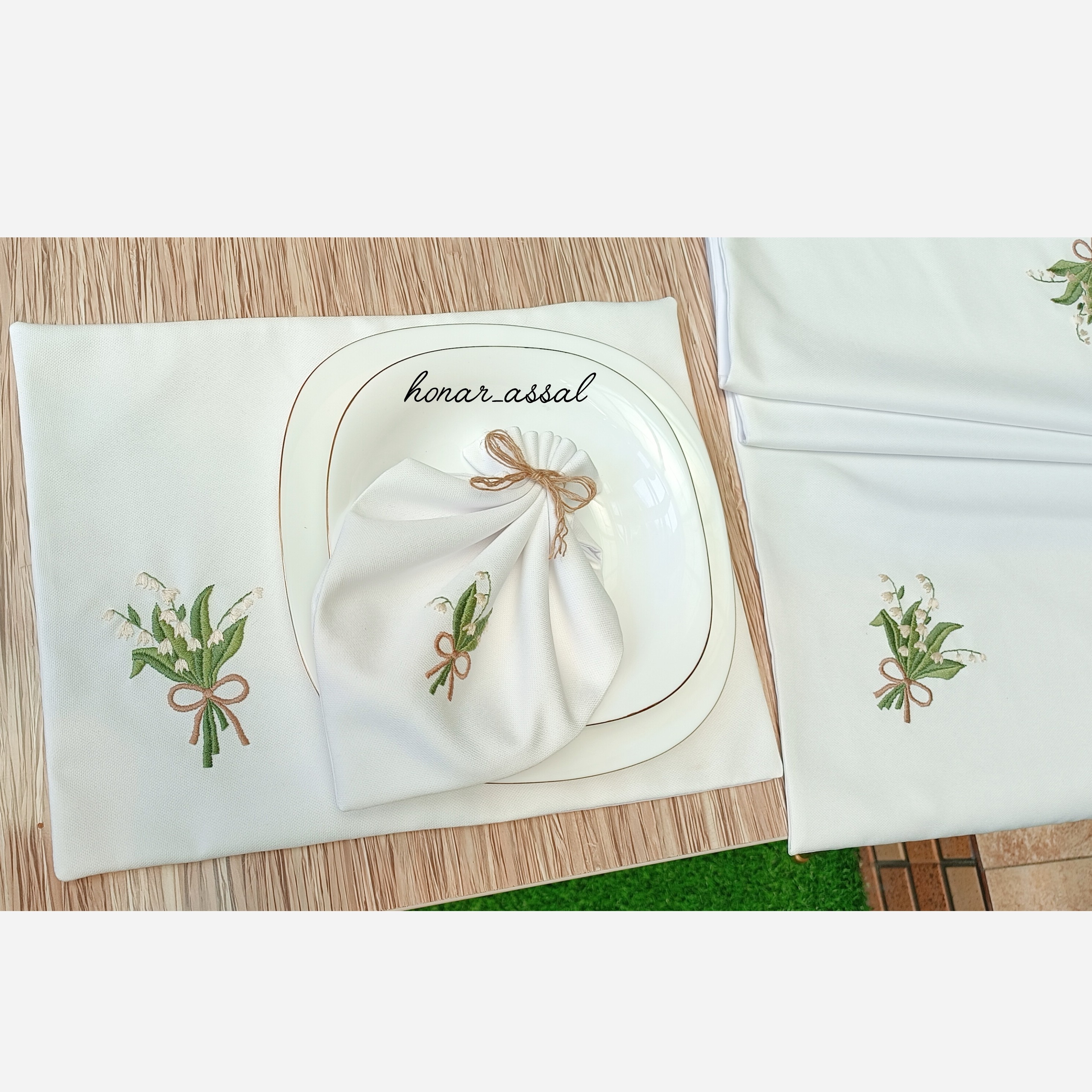 ست زیر بشقابی و دستمال سفره و رانر گلدوزی مبلمونسرا مدل 300637
