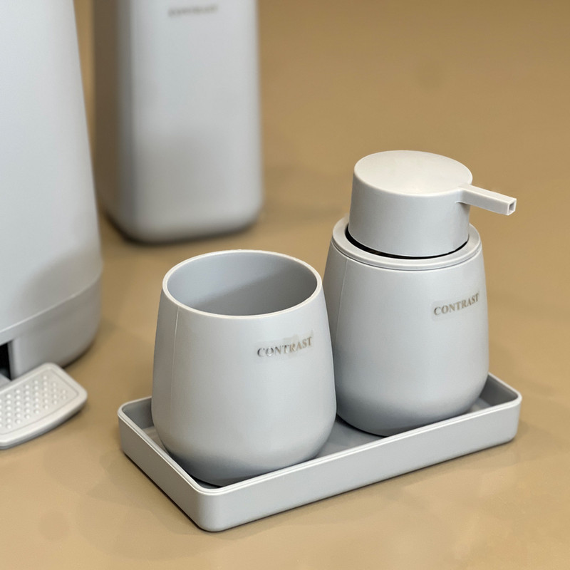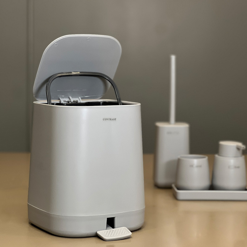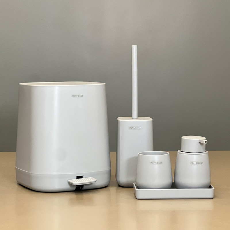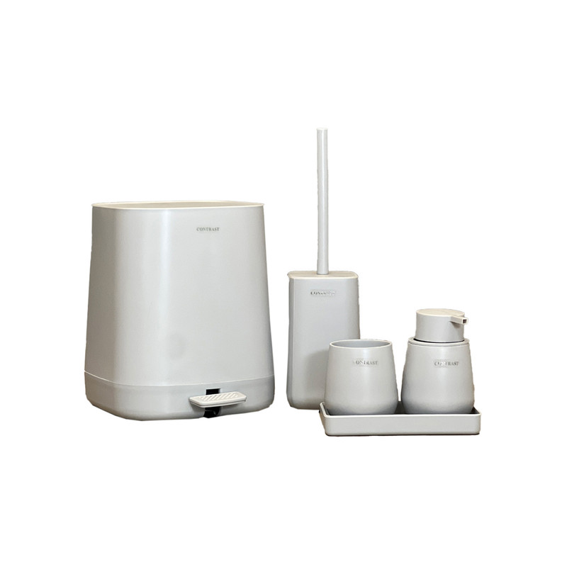 سطل زباله با ابعاد ۲۶×۲۰×۲۰ (±۲) سانتیمتر به همراه سطل داخلی برس توالت با ابعاد ۹×۹×۳۶ (±۲) سانتیمتر جا مسواکی با ابعاد ۷×۷×۹ (±۲) سانتیمتر مخزن پمپی صابون مایع با ابعاد ۷×۷×۱۳ (±۲) سانتیمتر