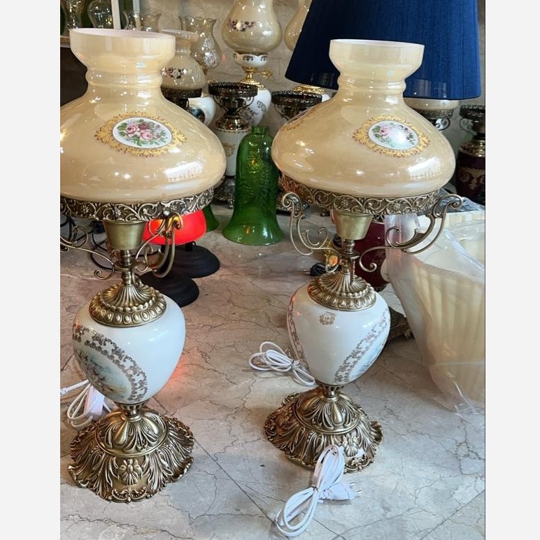 آباژور رومیزی چینی برنز لمپا لنتر حباب دار چراغ شمعدان برنزی برنجی قالپاقی مبلمونسرا مدل 231931