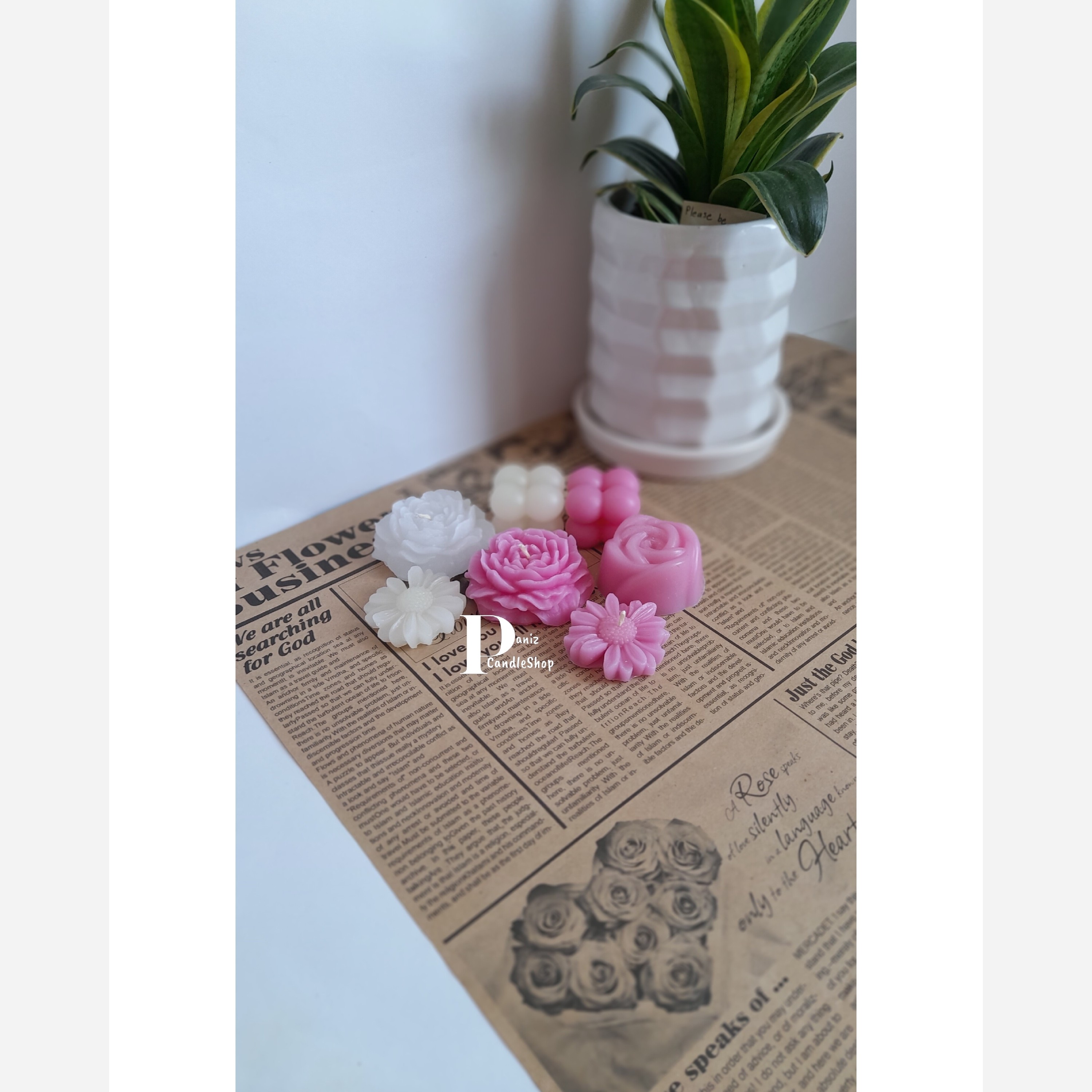 ست شمعِ هفت عددی رنگ سفید صورتی مبلمونسرا مدل 285758