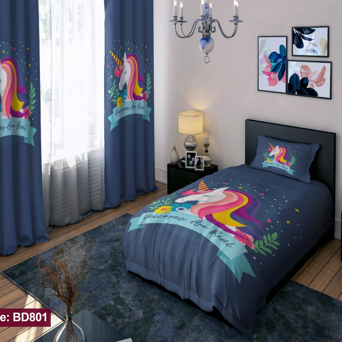 سرویس روتختی یه نفره 4تیکه طرحهای اسب تک شاخ قیمت مناسب ارسال رایگان مبلمونسرا مدل 227290