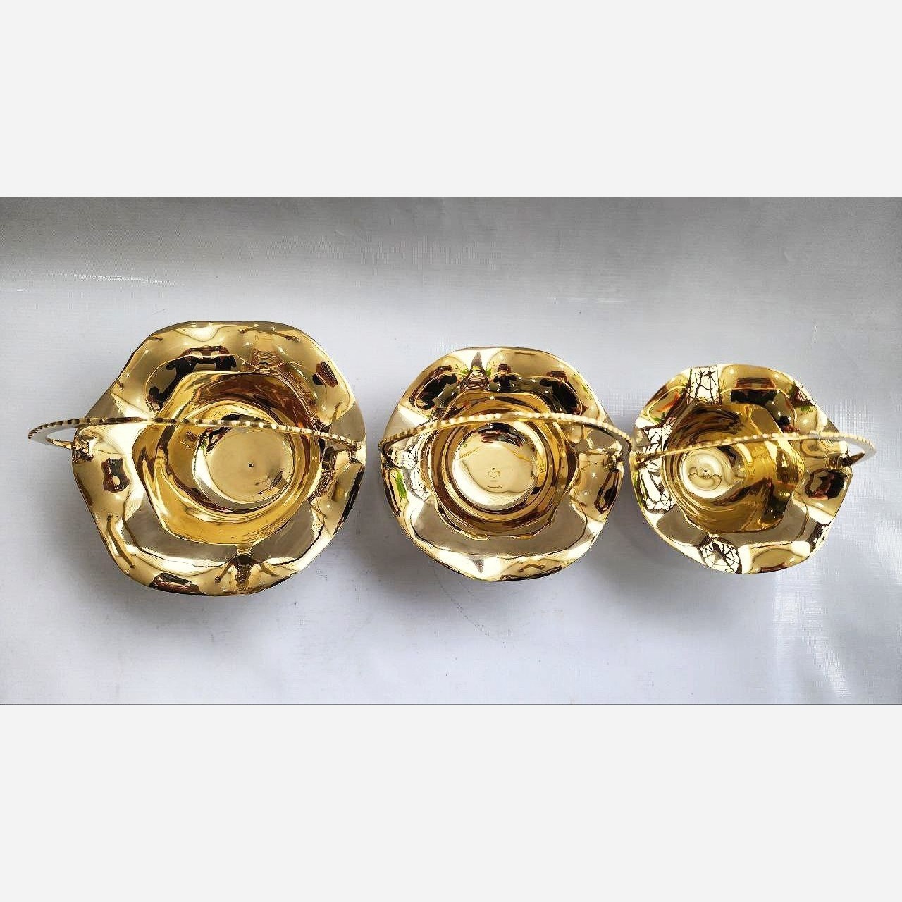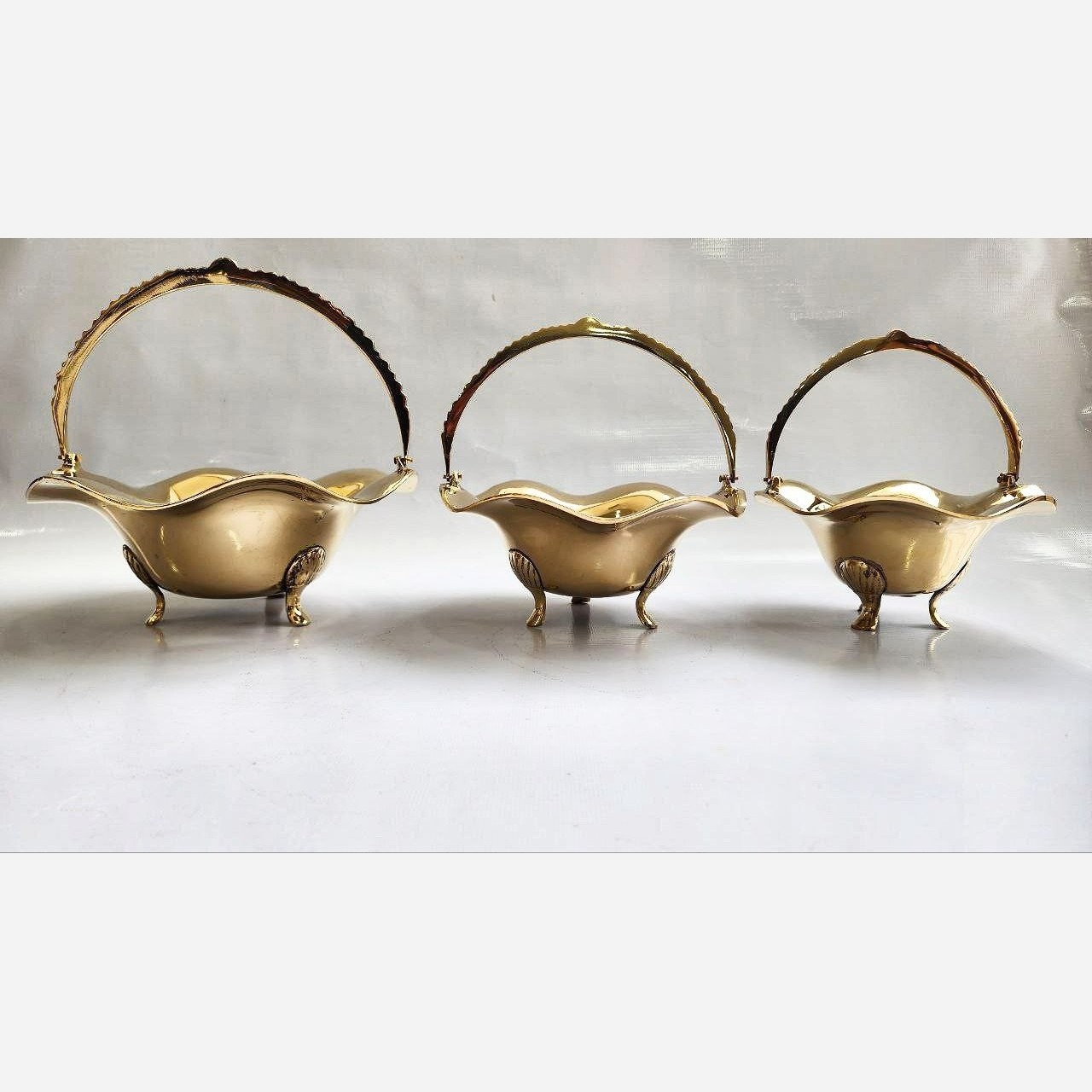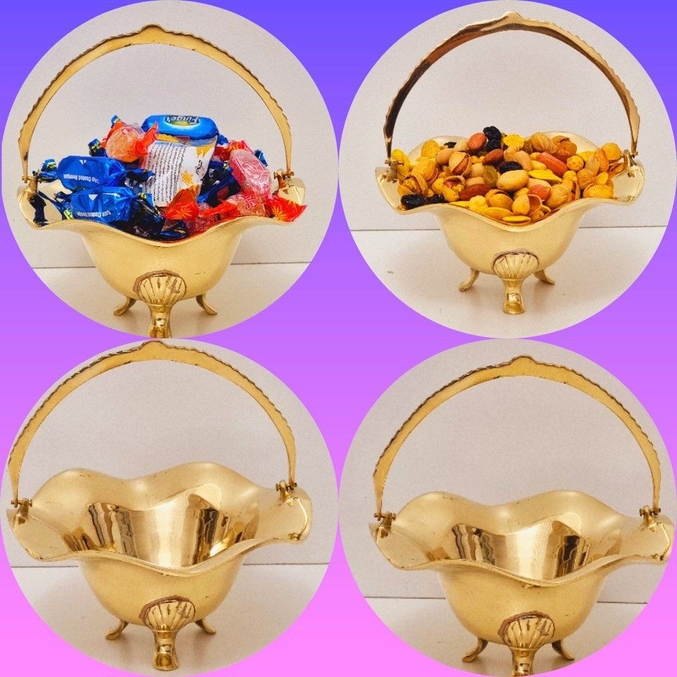 سبد اجیلخوری شکلات خوری برنزی هندی ی کار بسیار زیبا و چشمنواز دسته دار و سه پایه جنس صدر در صد برنز ضمانت مادام العمر ضخیم و سنگین وزن در سه سایز مجزا قطر 16 * 18 * 21 سانت قیمت 18 سانت 1/980 تومان