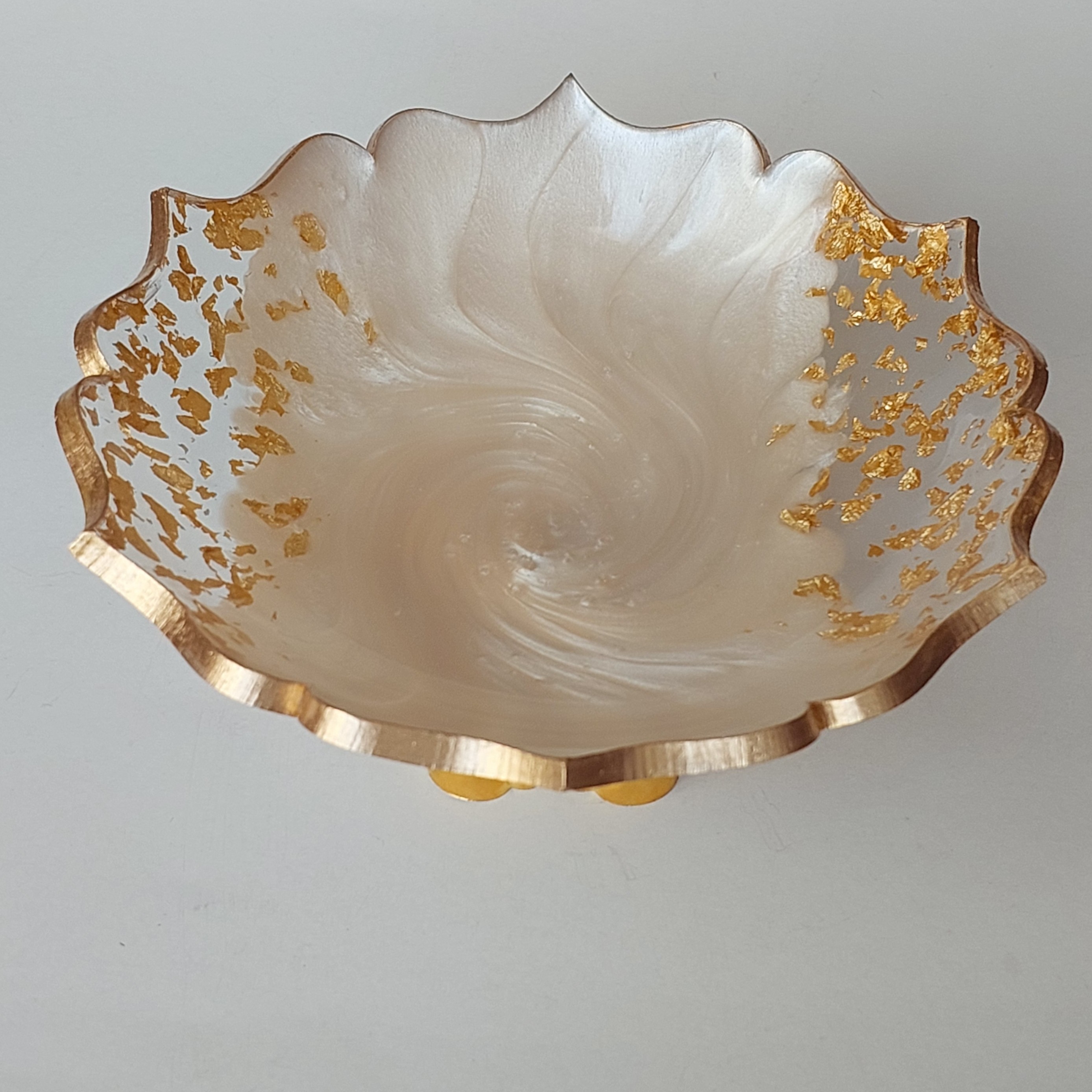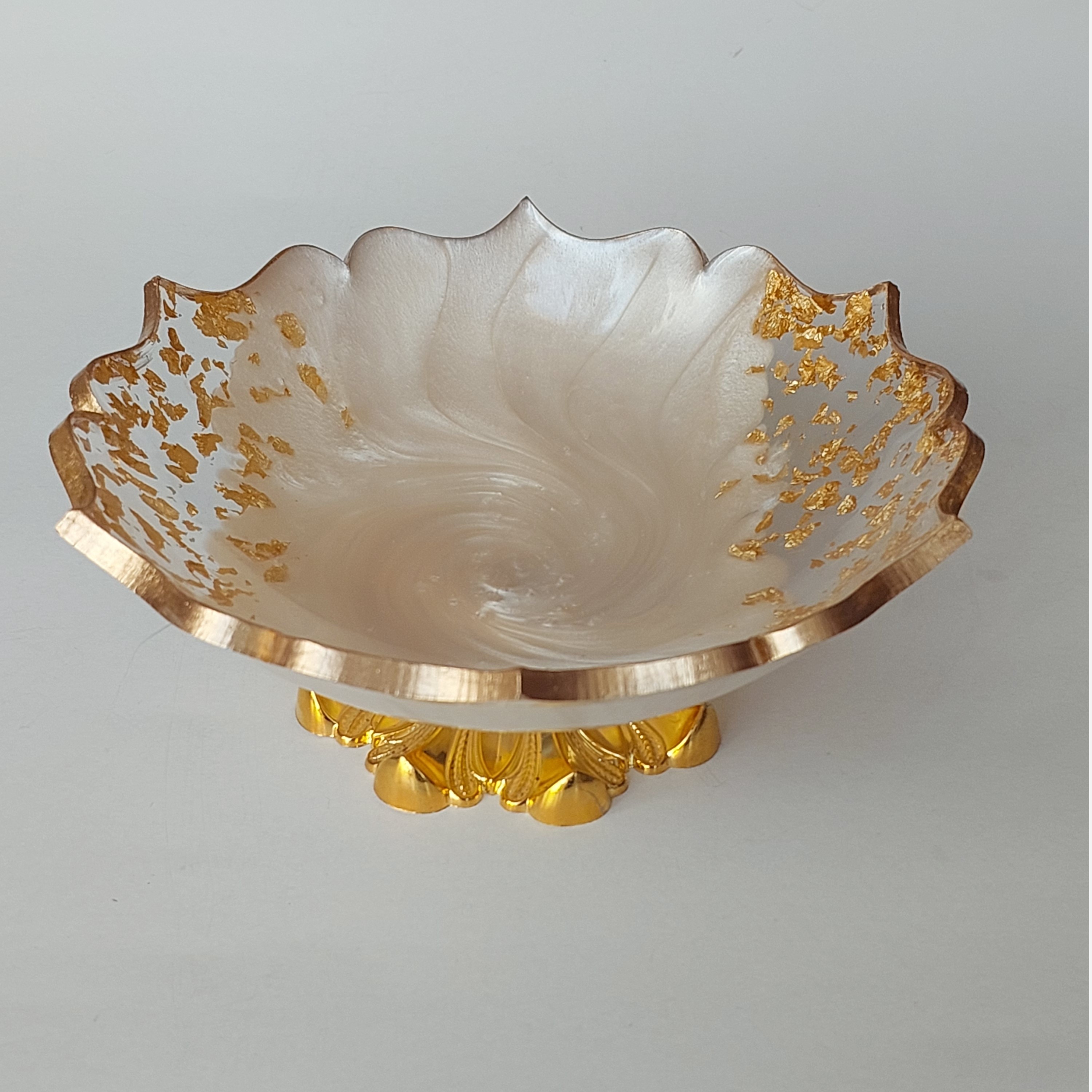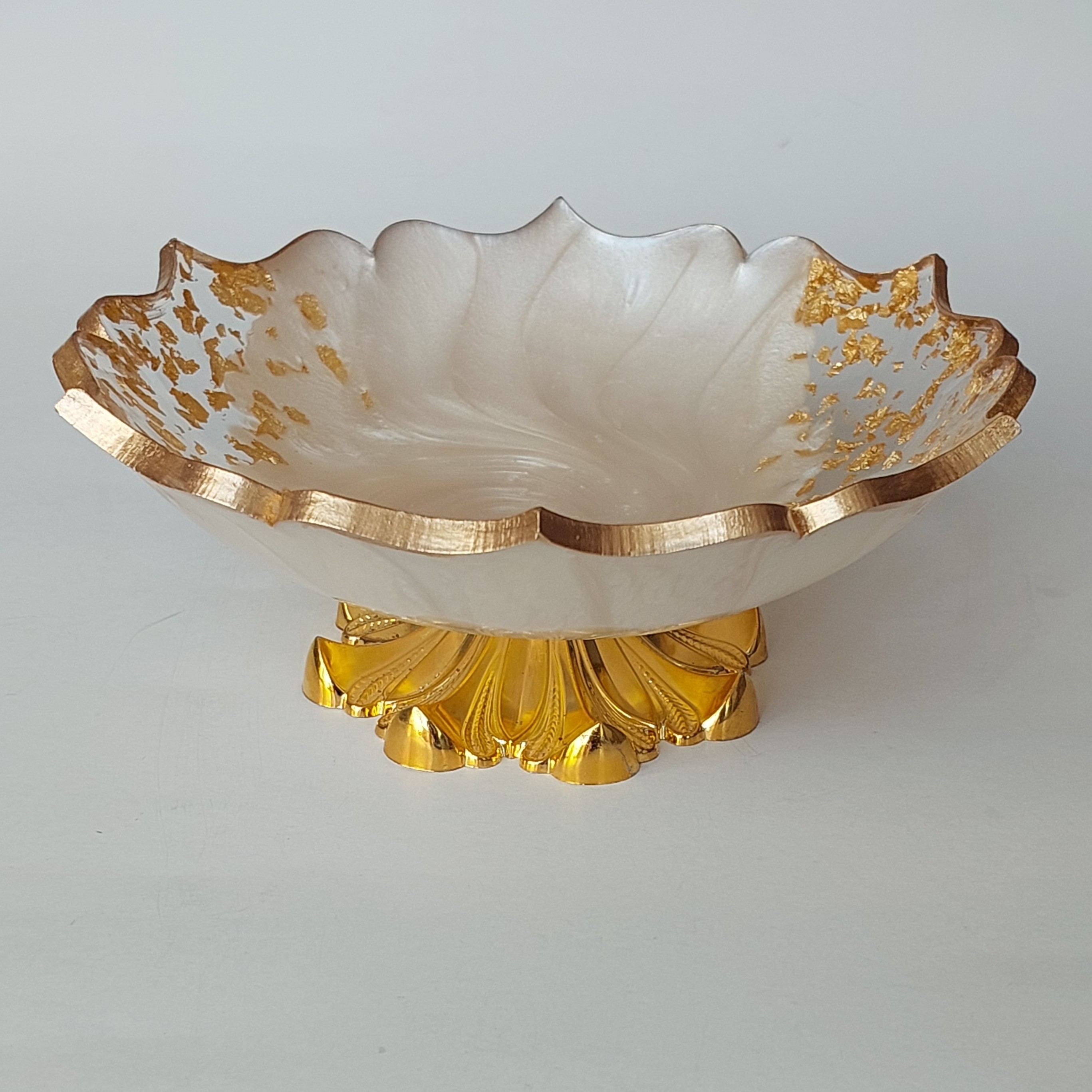 جنس رزین شفاف کار شده با ورق طلا ابعاد 22 سانت قابل شست و شو و تا حدودی نشکن بسیار زیبا و خاص