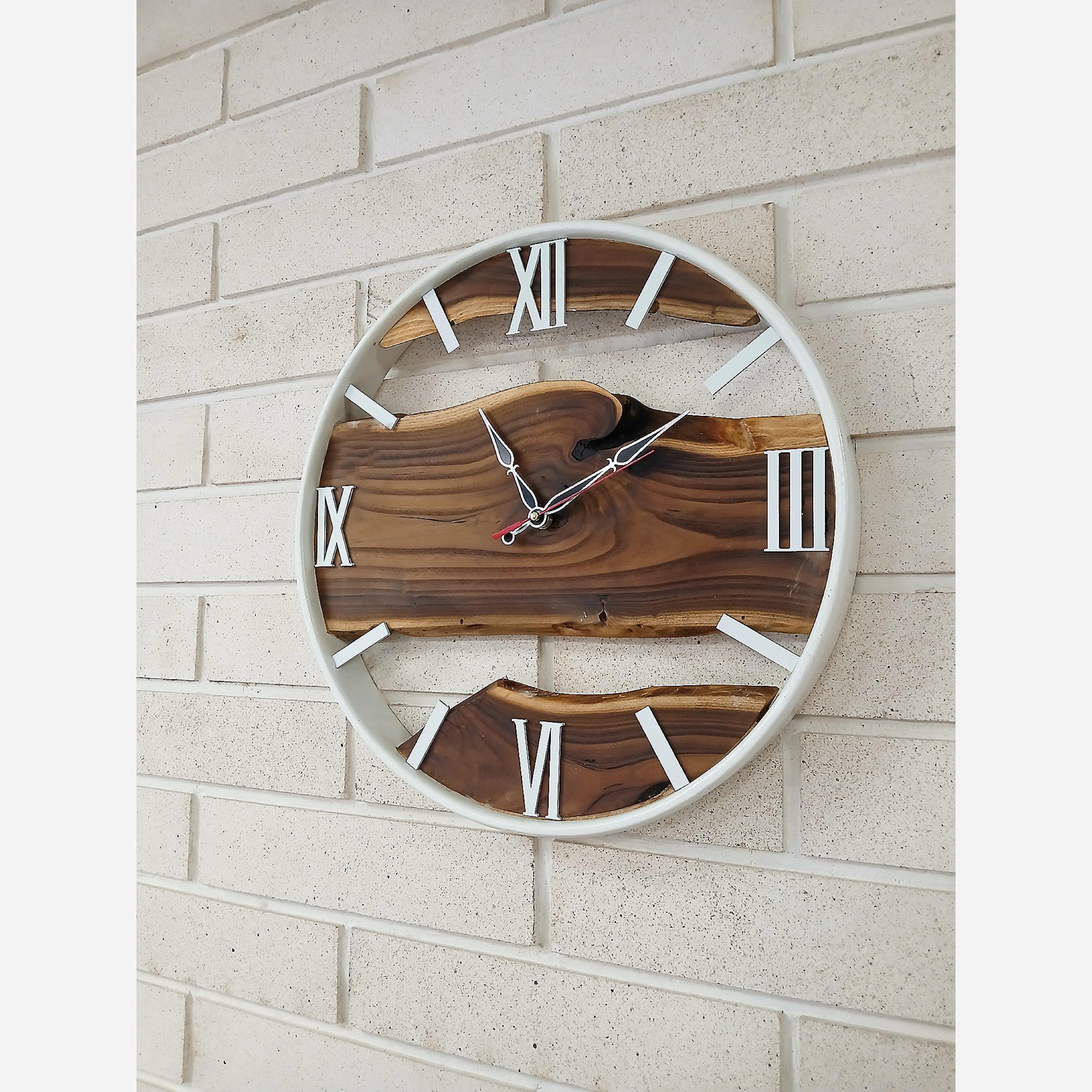 ساعت رستیک چوب طبیعی سنجد عایق شده با روغن گیاهی کاملا مقاوم و جاودانه شده موتور آرامگرد درجه یک یه کار فوق العاده شیک و لاکچری برای زیبا تر کردن محیط