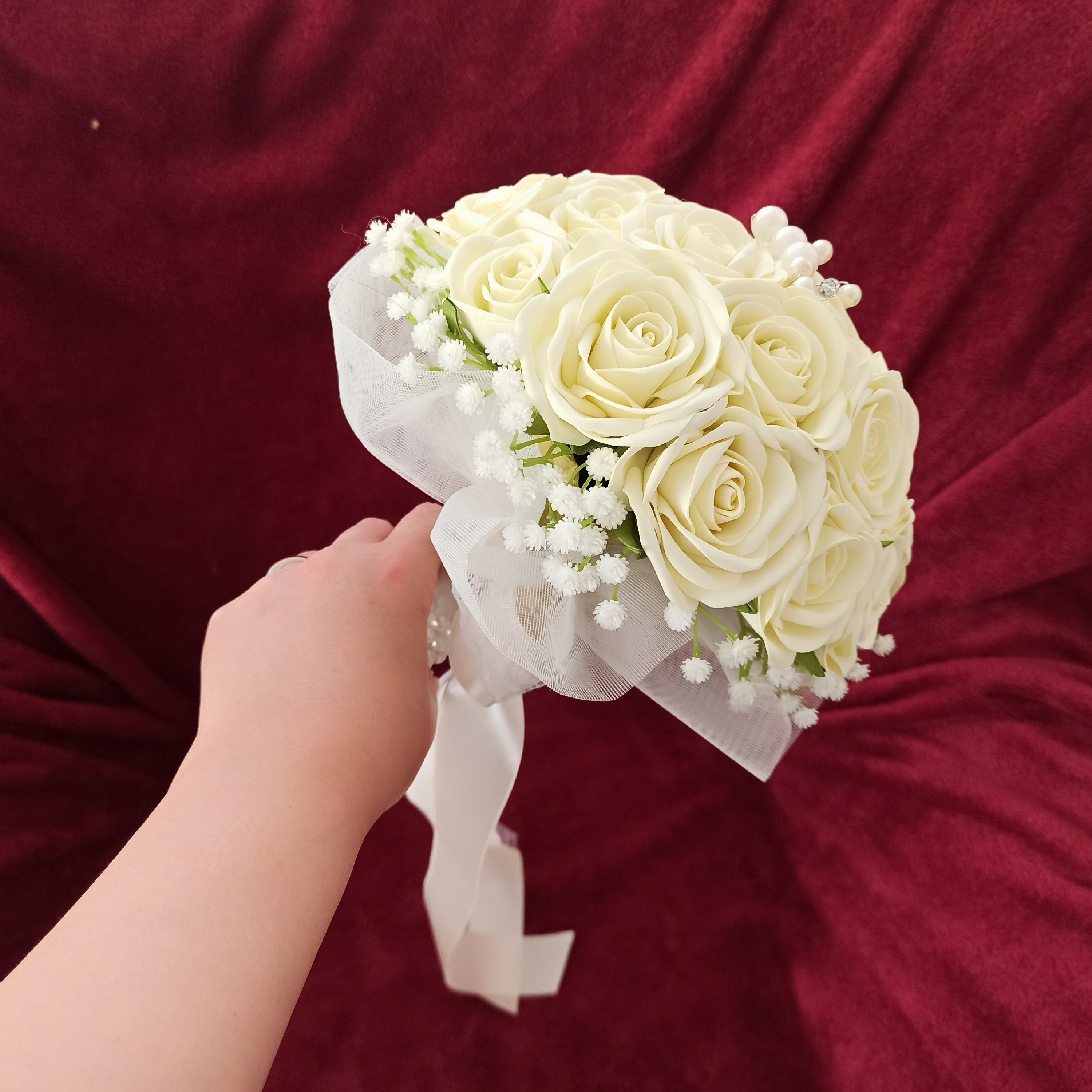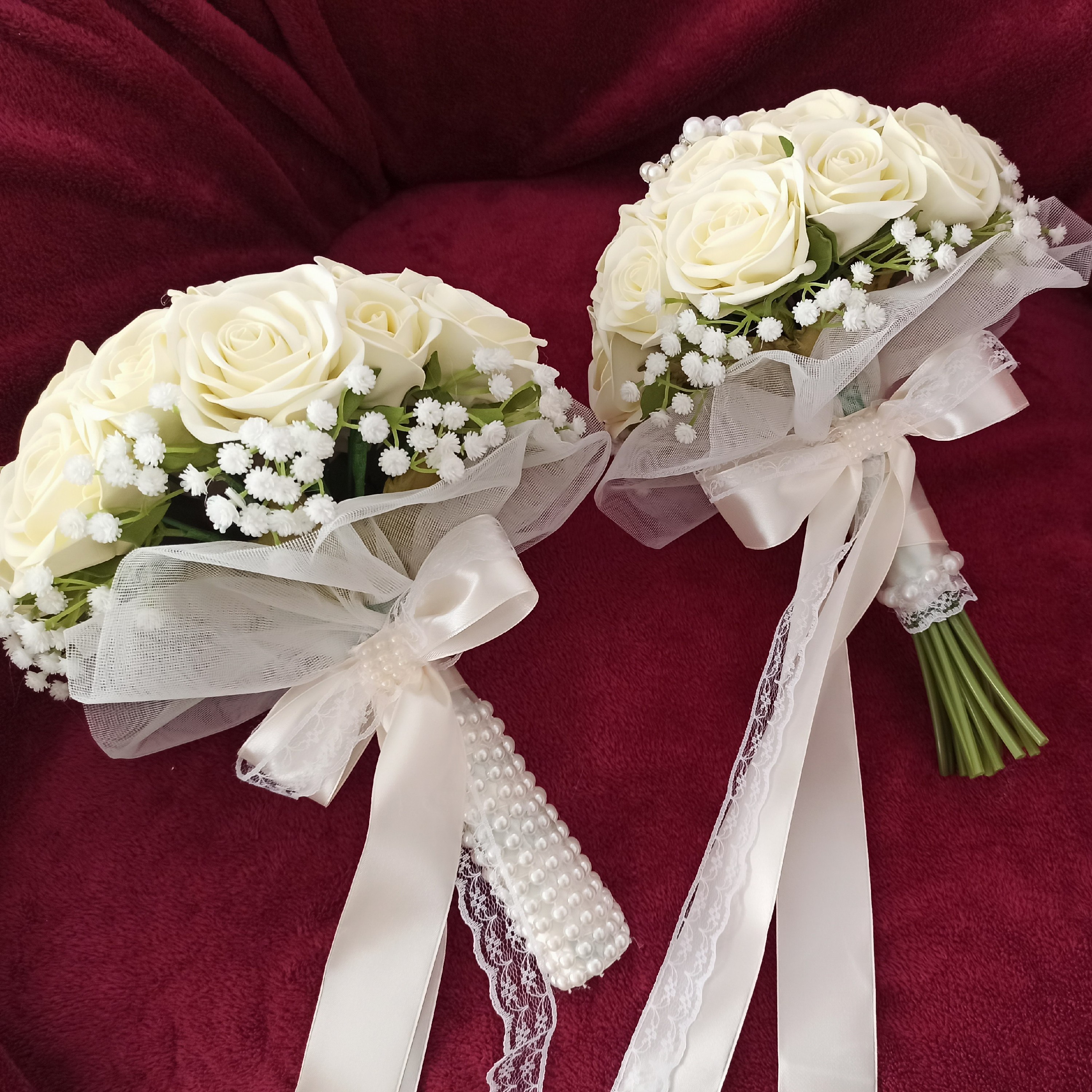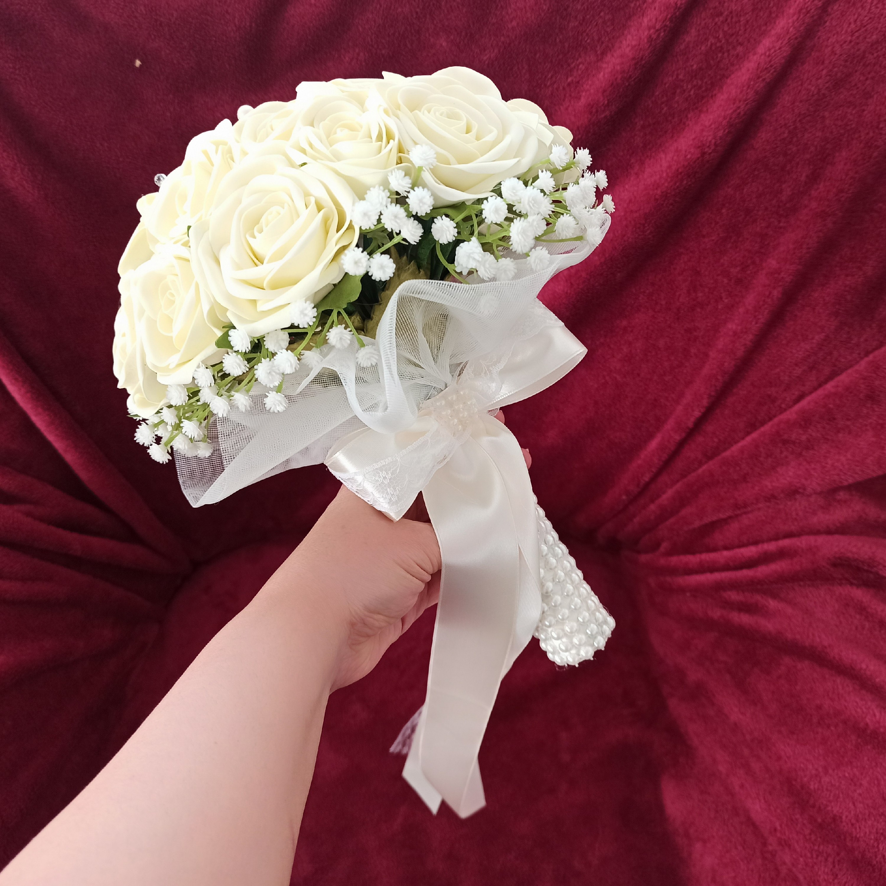 دسته گل عروس مصنوعی نباتی فومی مناسب عقد عروسی مبلمونسرا مدل 258435