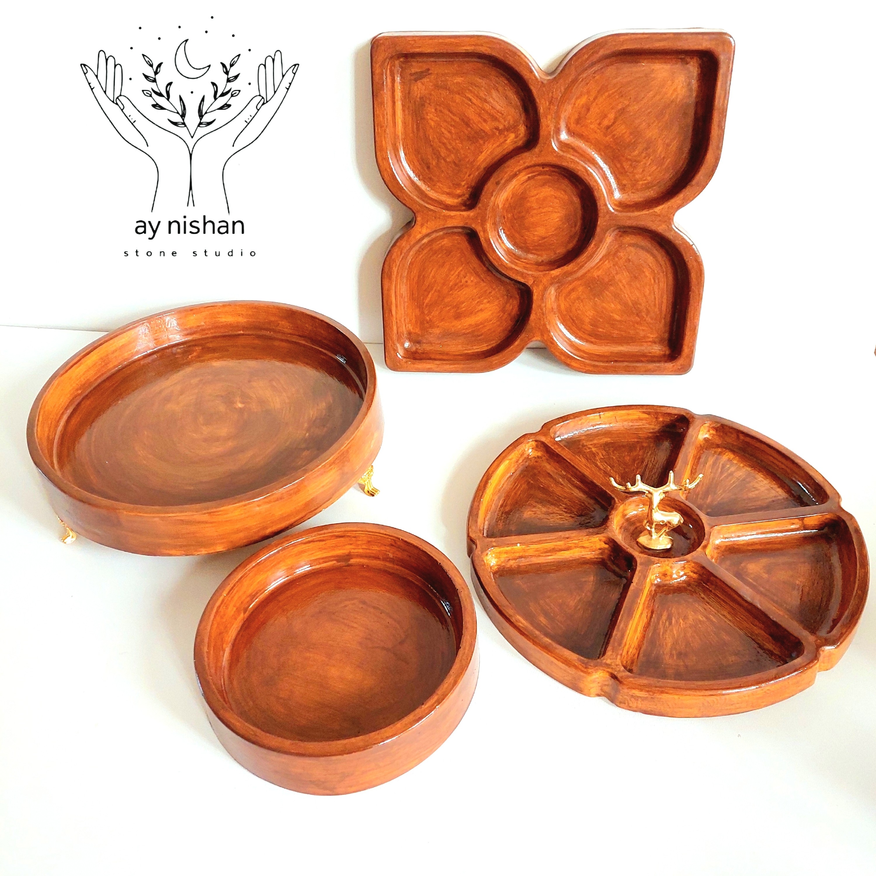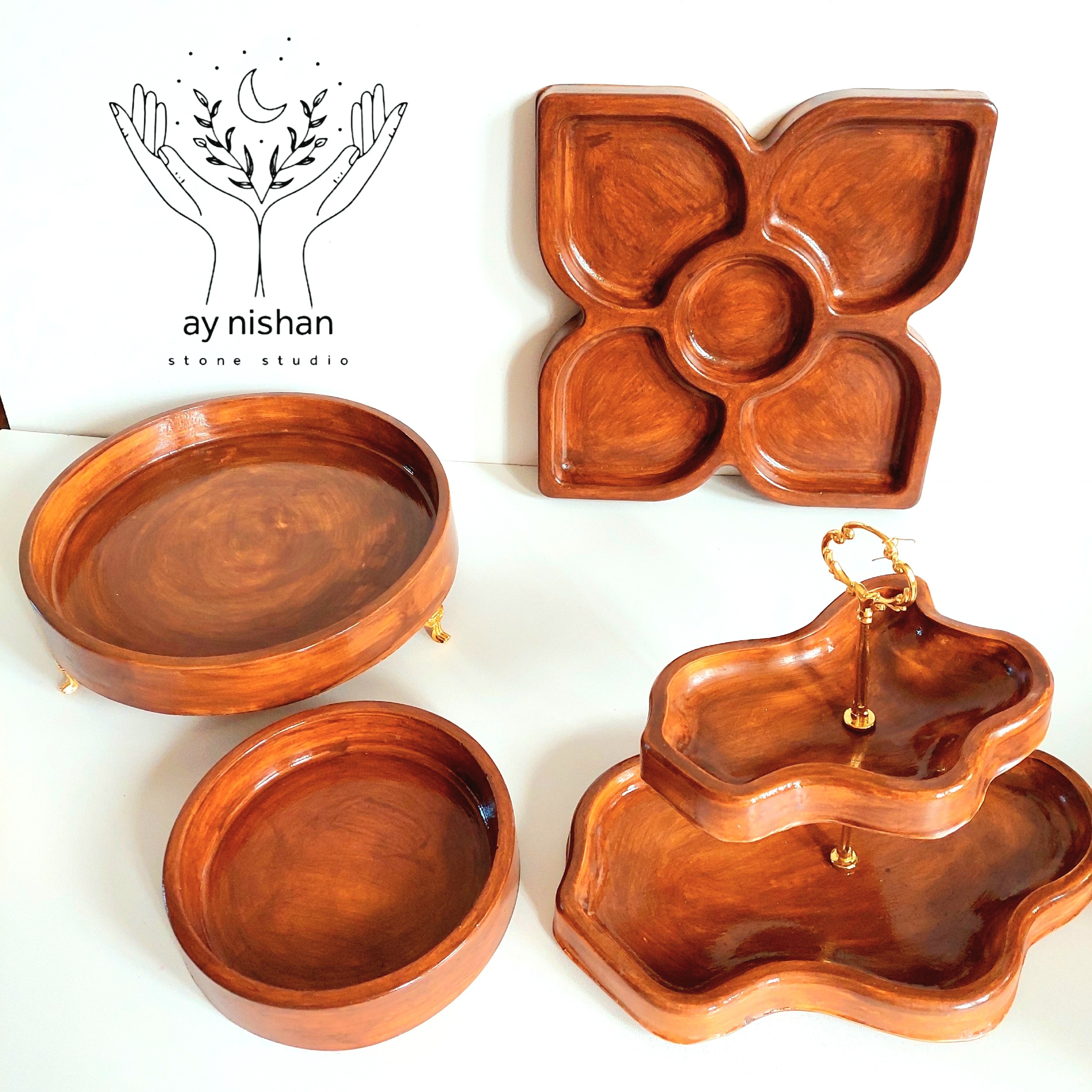 ظروف پذیرایی سنگ مصنوعی طرح چوب سفارش در رنگبندی ضداب لعاب سرد سرو غذای گرم و سرد شیرینی خوری اردو خوری میوه خوری اجیل خوری بصورت تک هم قابل سفارش