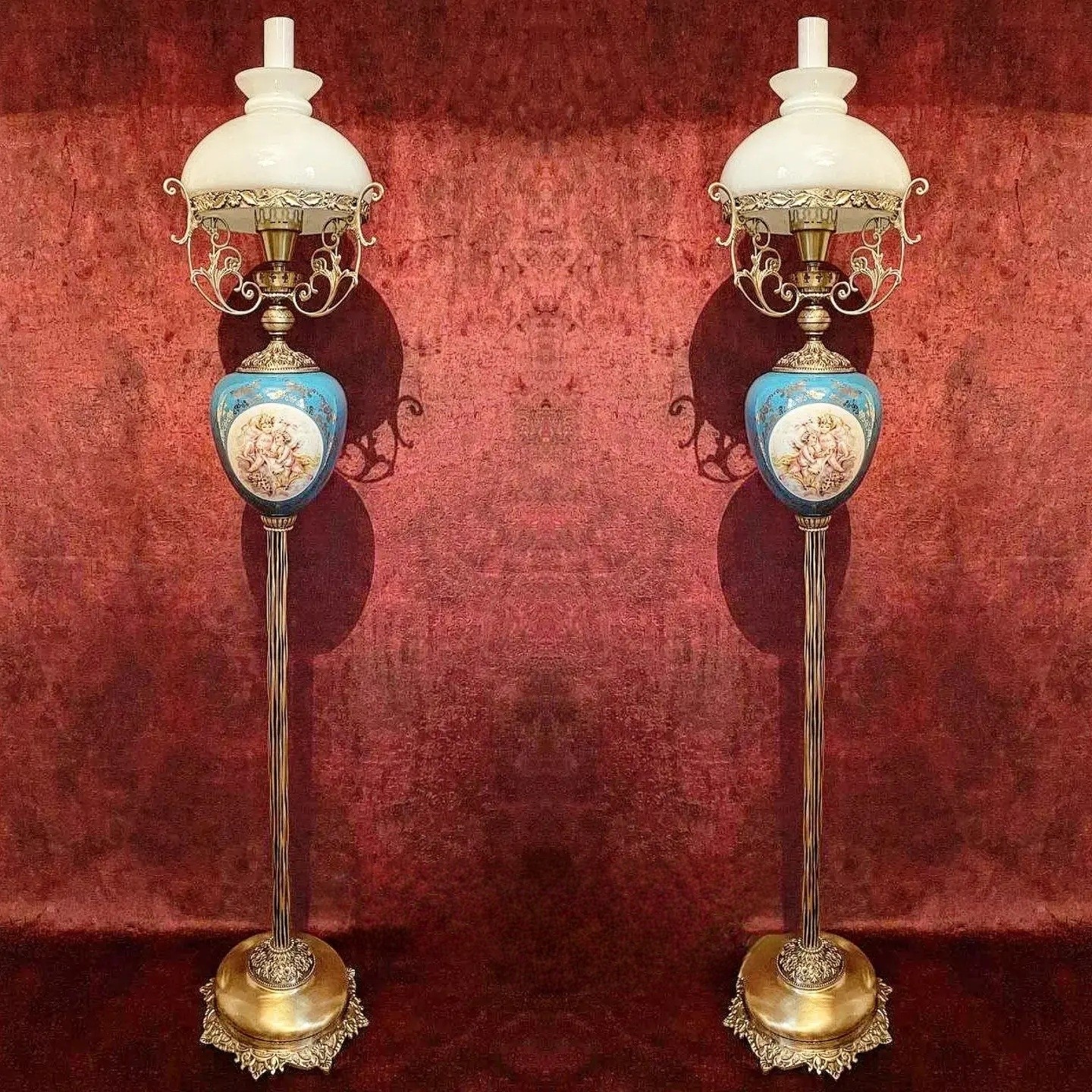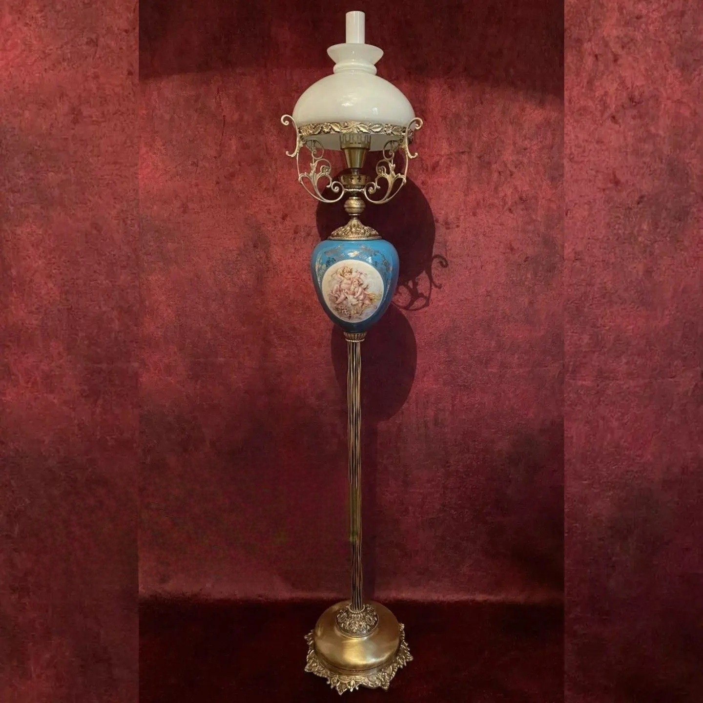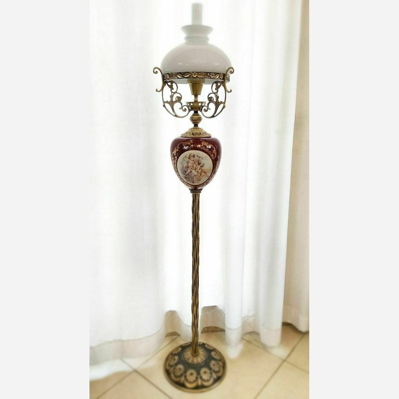 آباژور ایستاده لمپا لنتر کنار سالنی شمعدان چراغ نفتی حباب دار چینی برنز آنتیک برنجی برنزی قالپاقی مبلمونسرا مدل 234511