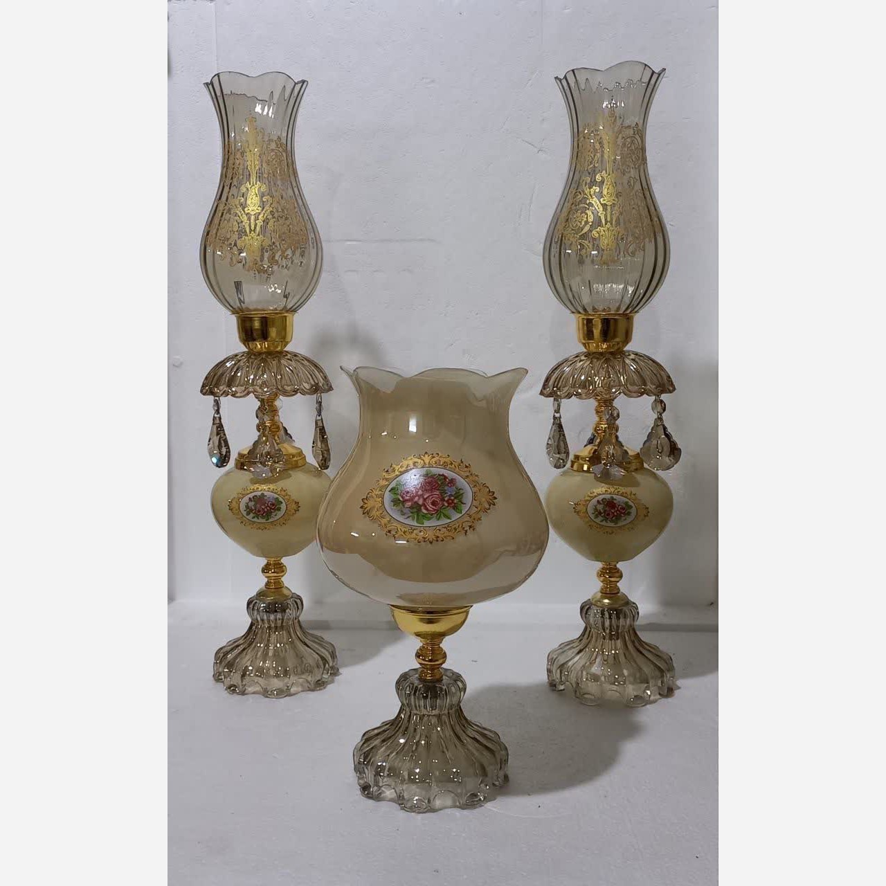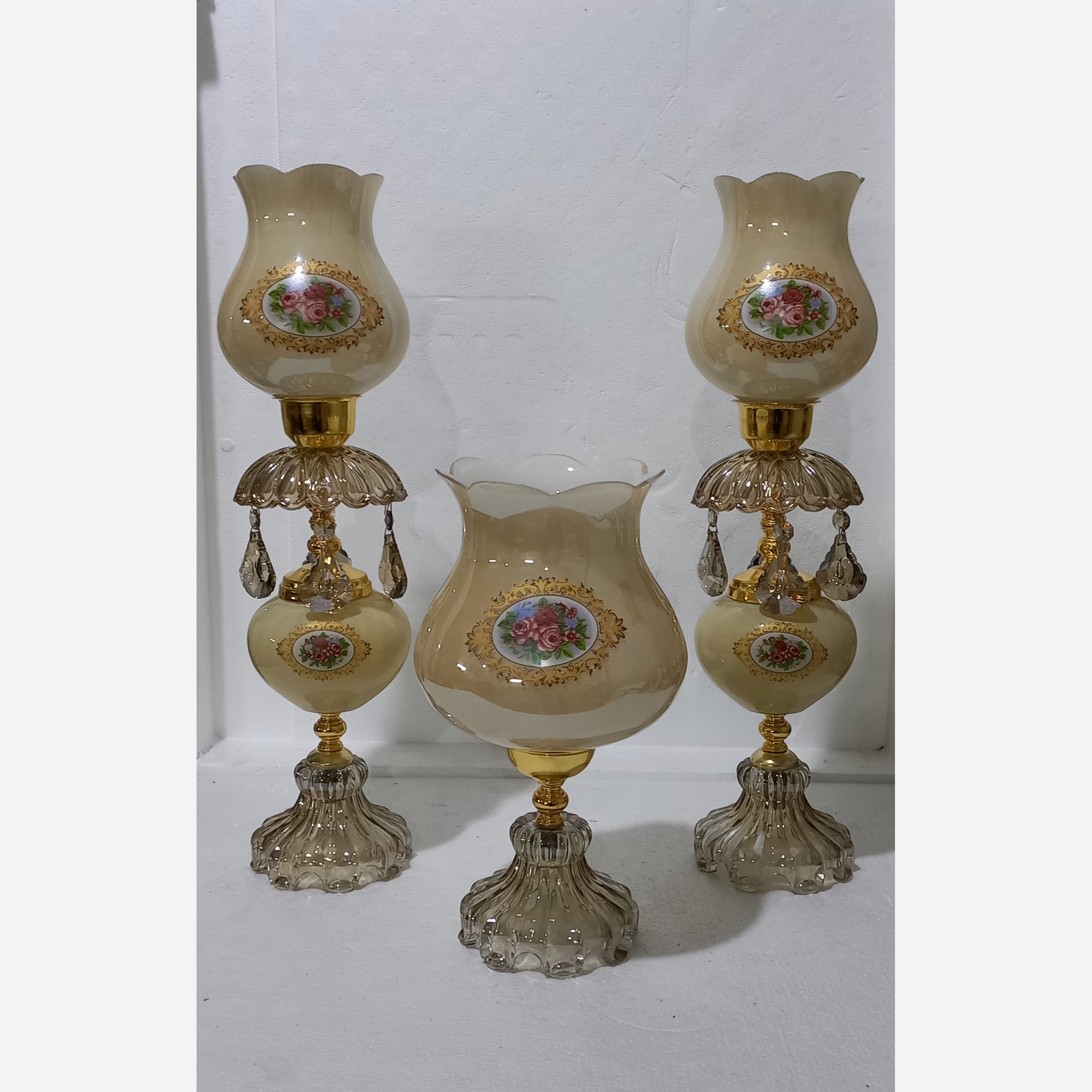 ما این شمعدونی و شکلات خوری رو از بلور درجه ی یک و دو پوست و گلدارساختیم و دارای آویز کریستال میباشد
