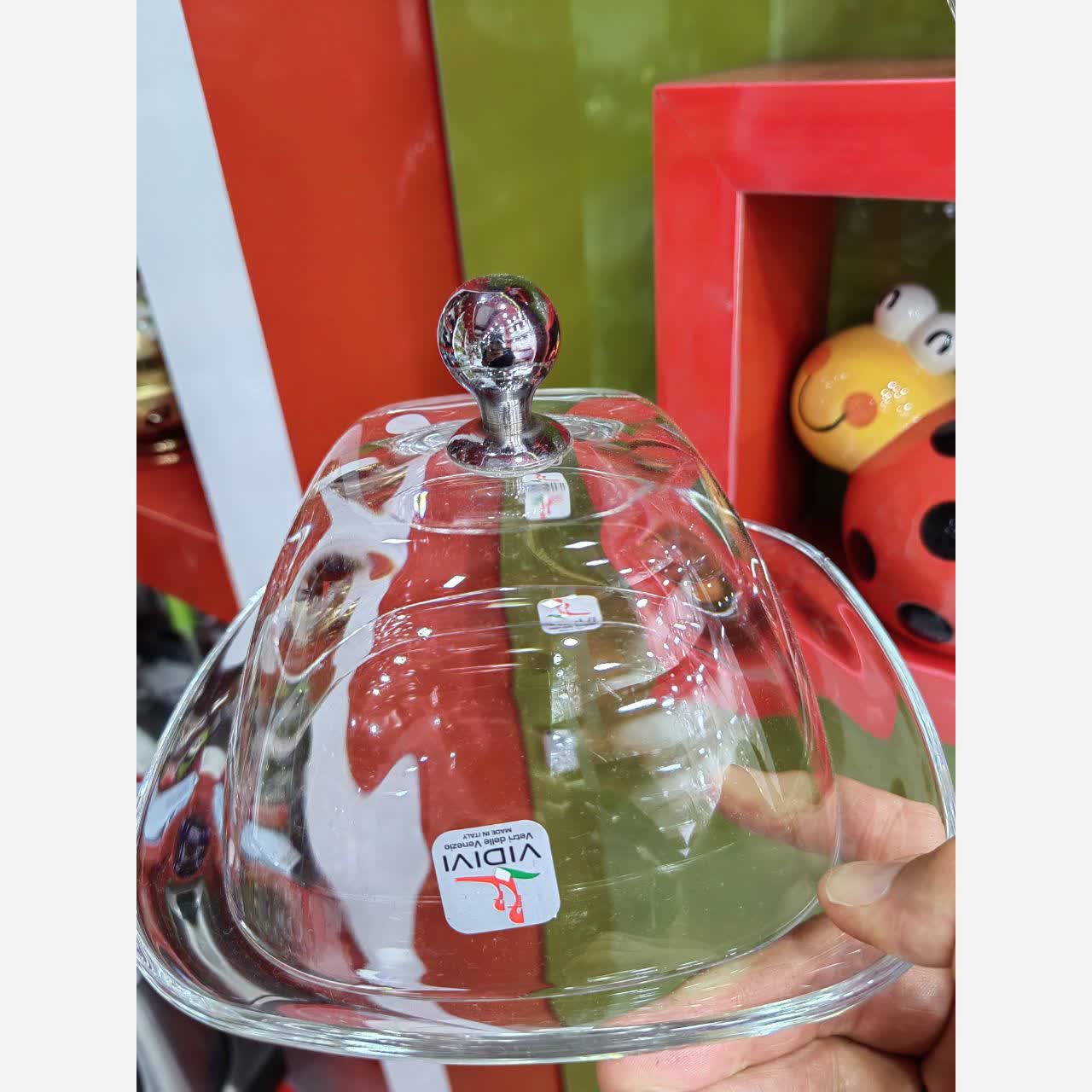 ظرف درب دار کوچک قطر بشقاب 15/15 سانت مناسب برای پنیر،کره،کیک در یخچال بلور ایتالیا