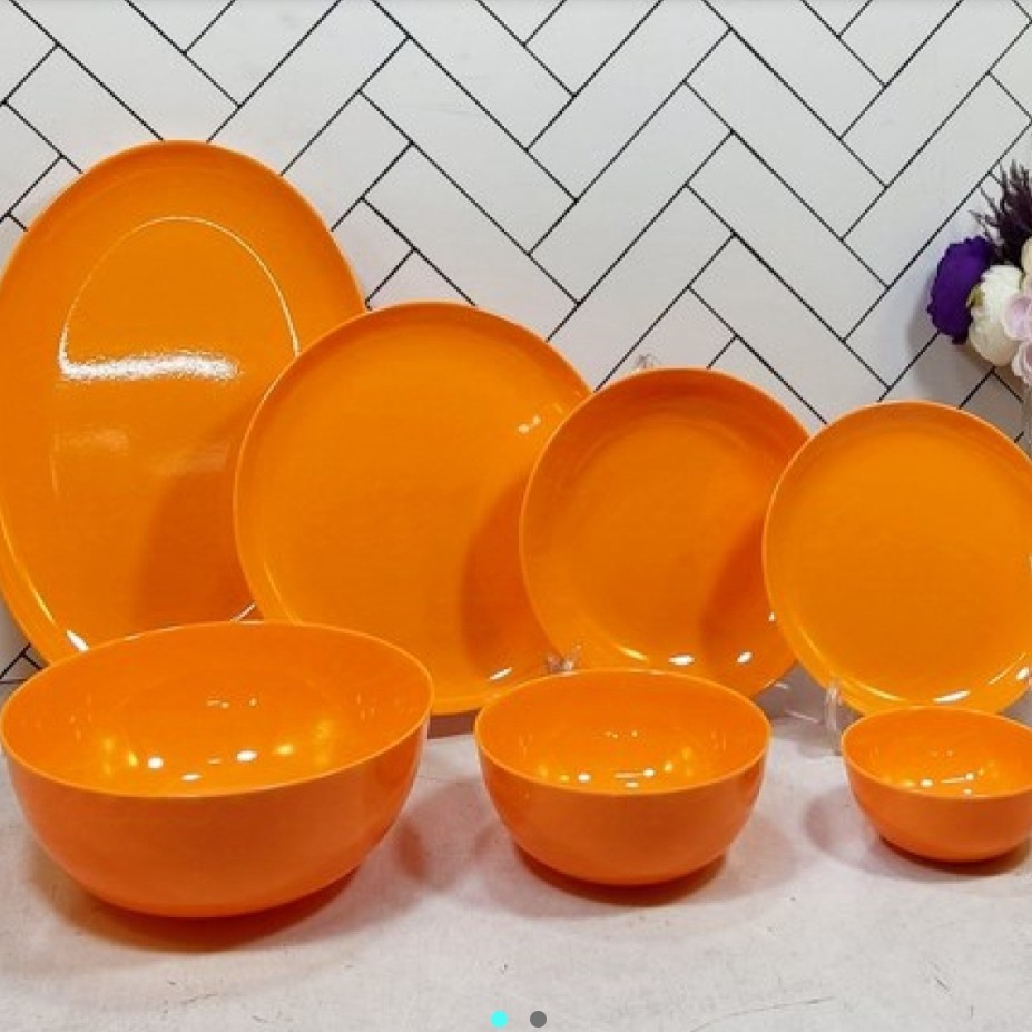 سرویس ملامین 33 پارچ اپال جام مشکی و نارنجی مبلمونسرا مدل 277694