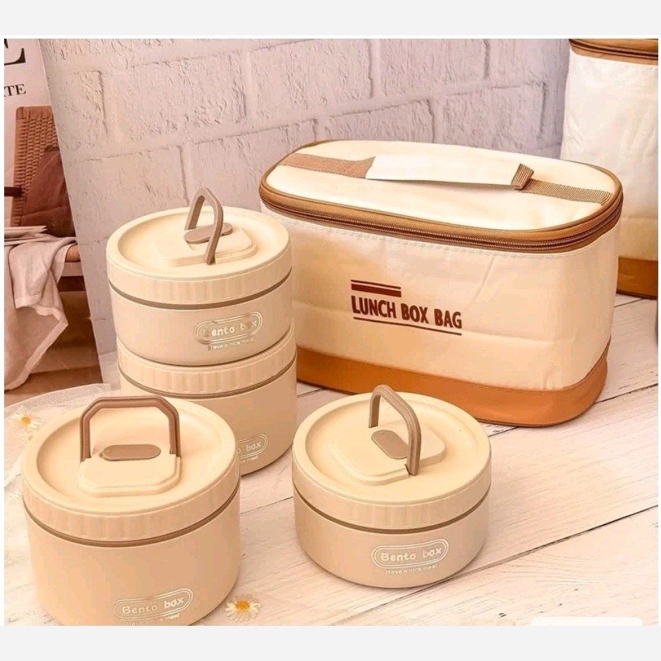 ظرف غذای داخل استیل 4تیکه به همراه کیف گرم نگهدار استیل 304 واشر دار سوپاپ دار